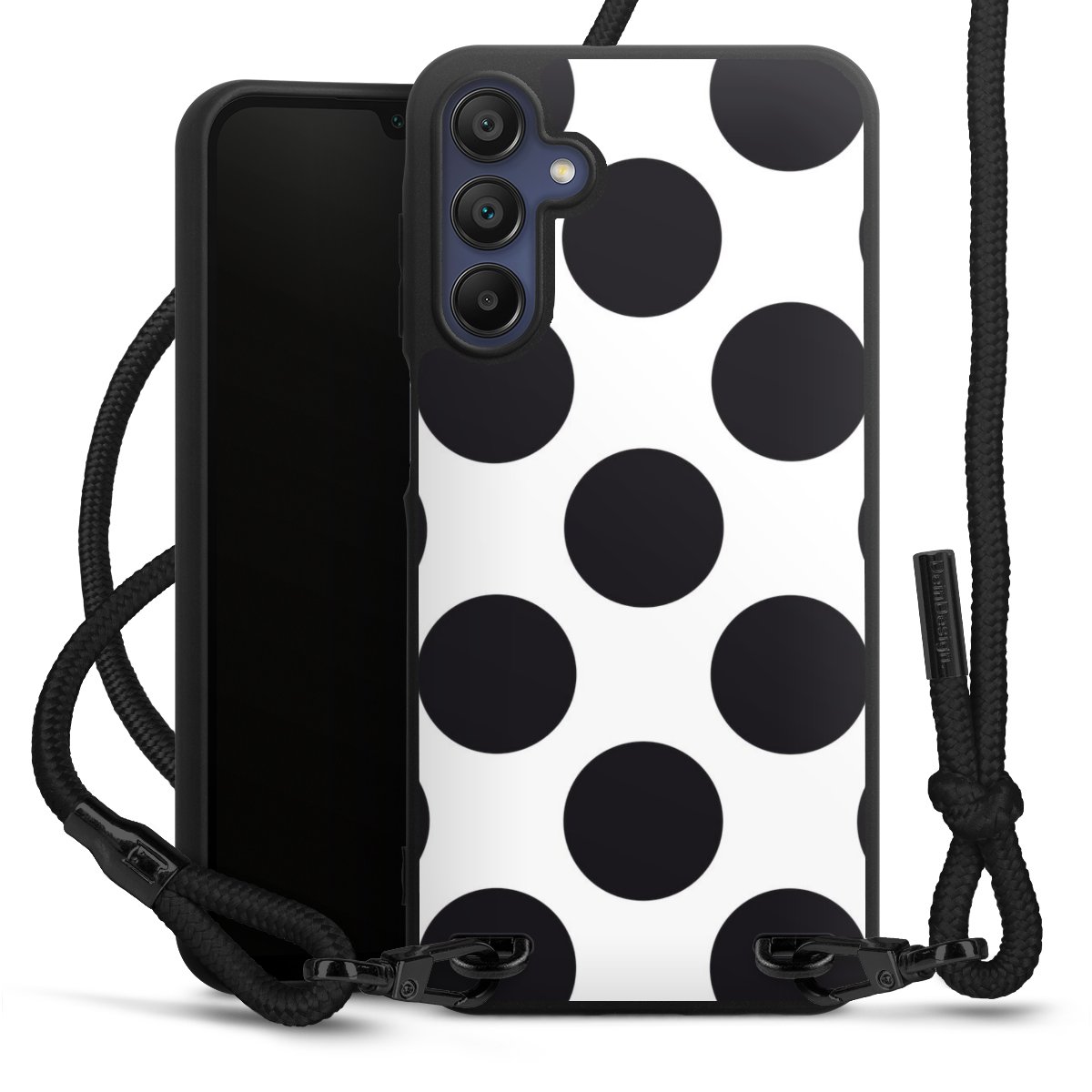 The matt black silicone case is made of flexible TPU (thermoplastic polyurethane) and offers robust protection. The durable, unbreakable material makes the cover flexible and dimensionally stable at the same time. The matte surface makes your design stand out more and is less susceptible to fingerprints and dirt. The stylish trend accessory fits comfortably in the hand and is perfectly complemented by the fabric (polyester) mobile phone strap. The braided fabric strap is approx. 1.70 metres long with a diameter of approx. 0.5 cm. Due to the special knotting technique, the length of the strap can be adjusted by simply pulling it, so that you can adapt it individually to your wishes. The practical case to wear around your neck is available with the fabric strap in black. As a little icing on the cake, we have provided the strap with a chic metal fastener in matt black. The strap is securely fastened to the case with loops made of high-quality genuine leather and press studs. The ends of the fabric strap are covered with metallic end caps and thus protected from fraying.