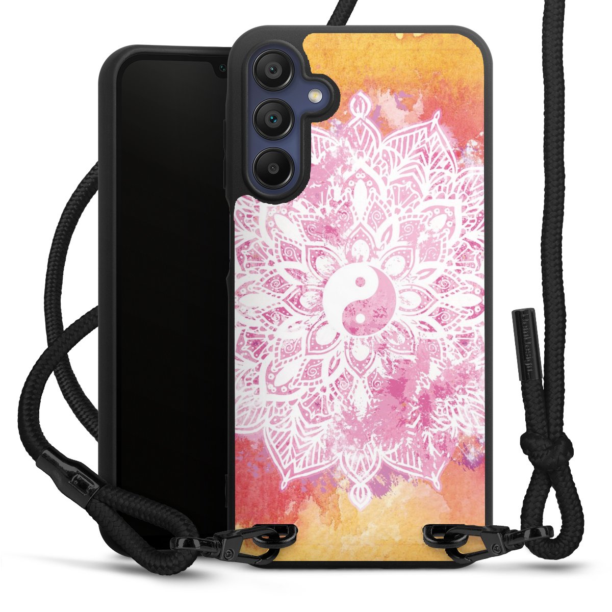 The matt black silicone case is made of flexible TPU (thermoplastic polyurethane) and offers robust protection. The durable, unbreakable material makes the cover flexible and dimensionally stable at the same time. The matte surface makes your design stand out more and is less susceptible to fingerprints and dirt. The stylish trend accessory fits comfortably in the hand and is perfectly complemented by the fabric (polyester) mobile phone strap. The braided fabric strap is approx. 1.70 metres long with a diameter of approx. 0.5 cm. Due to the special knotting technique, the length of the strap can be adjusted by simply pulling it, so that you can adapt it individually to your wishes. The practical case to wear around your neck is available with the fabric strap in black. As a little icing on the cake, we have provided the strap with a chic metal fastener in matt black. The strap is securely fastened to the case with loops made of high-quality genuine leather and press studs. The ends of the fabric strap are covered with metallic end caps and thus protected from fraying.