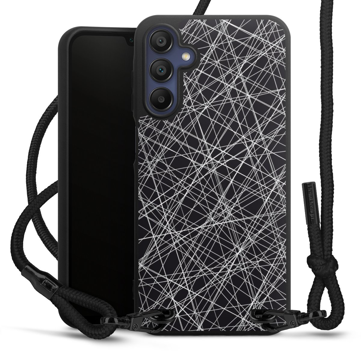 Pure Black: Phone case, fabric strap and metal details in stylish matt black.