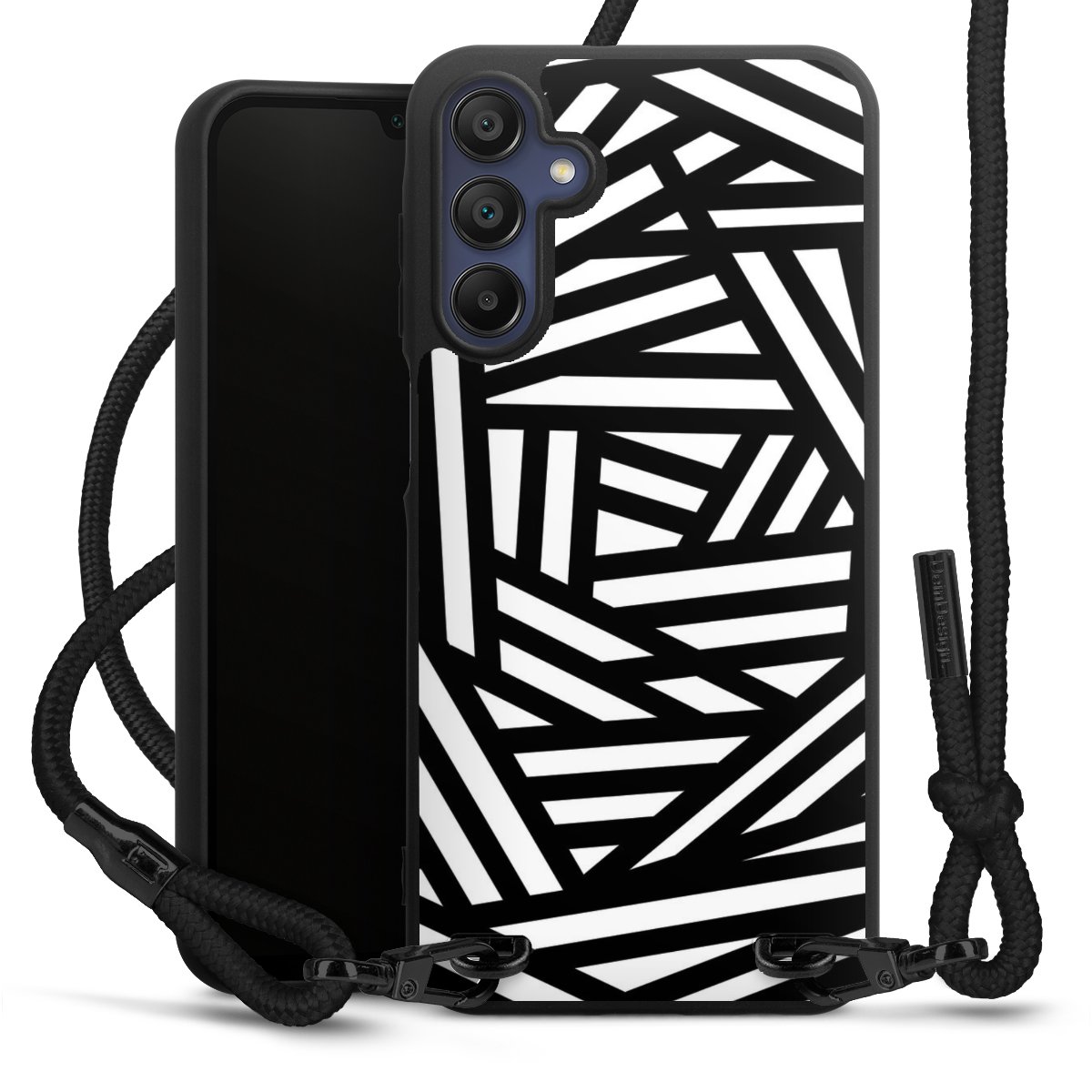 The matt black silicone case is made of flexible TPU (thermoplastic polyurethane) and offers robust protection. The durable, unbreakable material makes the cover flexible and dimensionally stable at the same time. The matte surface makes your design stand out more and is less susceptible to fingerprints and dirt. The stylish trend accessory fits comfortably in the hand and is perfectly complemented by the fabric (polyester) mobile phone strap. The braided fabric strap is approx. 1.70 metres long with a diameter of approx. 0.5 cm. Due to the special knotting technique, the length of the strap can be adjusted by simply pulling it, so that you can adapt it individually to your wishes. The practical case to wear around your neck is available with the fabric strap in black. As a little icing on the cake, we have provided the strap with a chic metal fastener in matt black. The strap is securely fastened to the case with loops made of high-quality genuine leather and press studs. The ends of the fabric strap are covered with metallic end caps and thus protected from fraying.