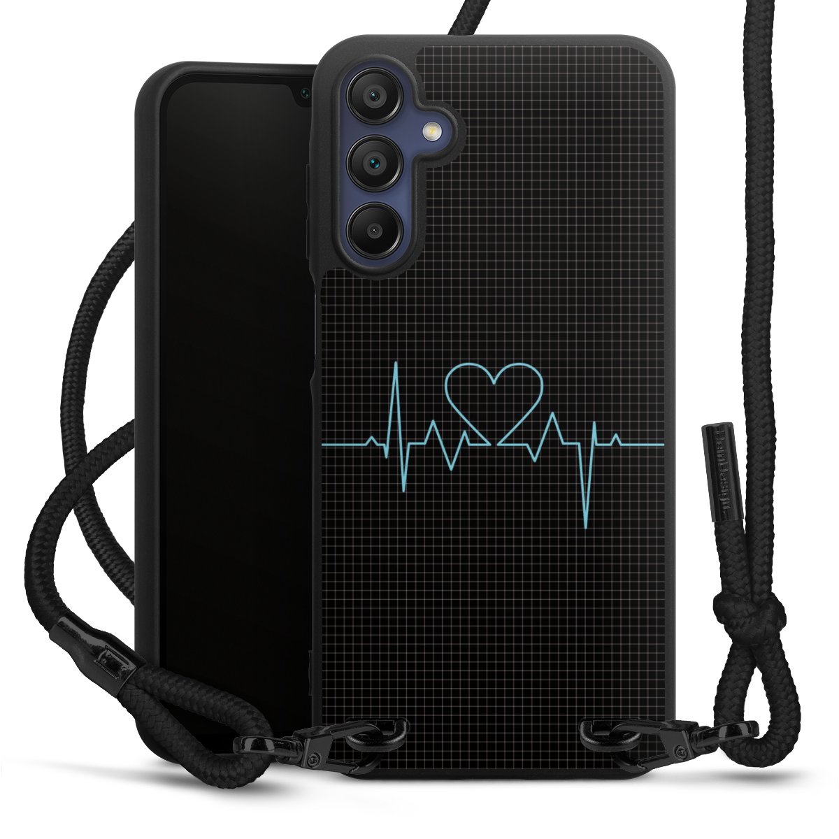 The matt black silicone case is made of flexible TPU (thermoplastic polyurethane) and offers robust protection. The durable, unbreakable material makes the cover flexible and dimensionally stable at the same time. The matte surface makes your design stand out more and is less susceptible to fingerprints and dirt. The stylish trend accessory fits comfortably in the hand and is perfectly complemented by the fabric (polyester) mobile phone strap. The braided fabric strap is approx. 1.70 metres long with a diameter of approx. 0.5 cm. Due to the special knotting technique, the length of the strap can be adjusted by simply pulling it, so that you can adapt it individually to your wishes. The practical case to wear around your neck is available with the fabric strap in black. As a little icing on the cake, we have provided the strap with a chic metal fastener in matt black. The strap is securely fastened to the case with loops made of high-quality genuine leather and press studs. The ends of the fabric strap are covered with metallic end caps and thus protected from fraying.