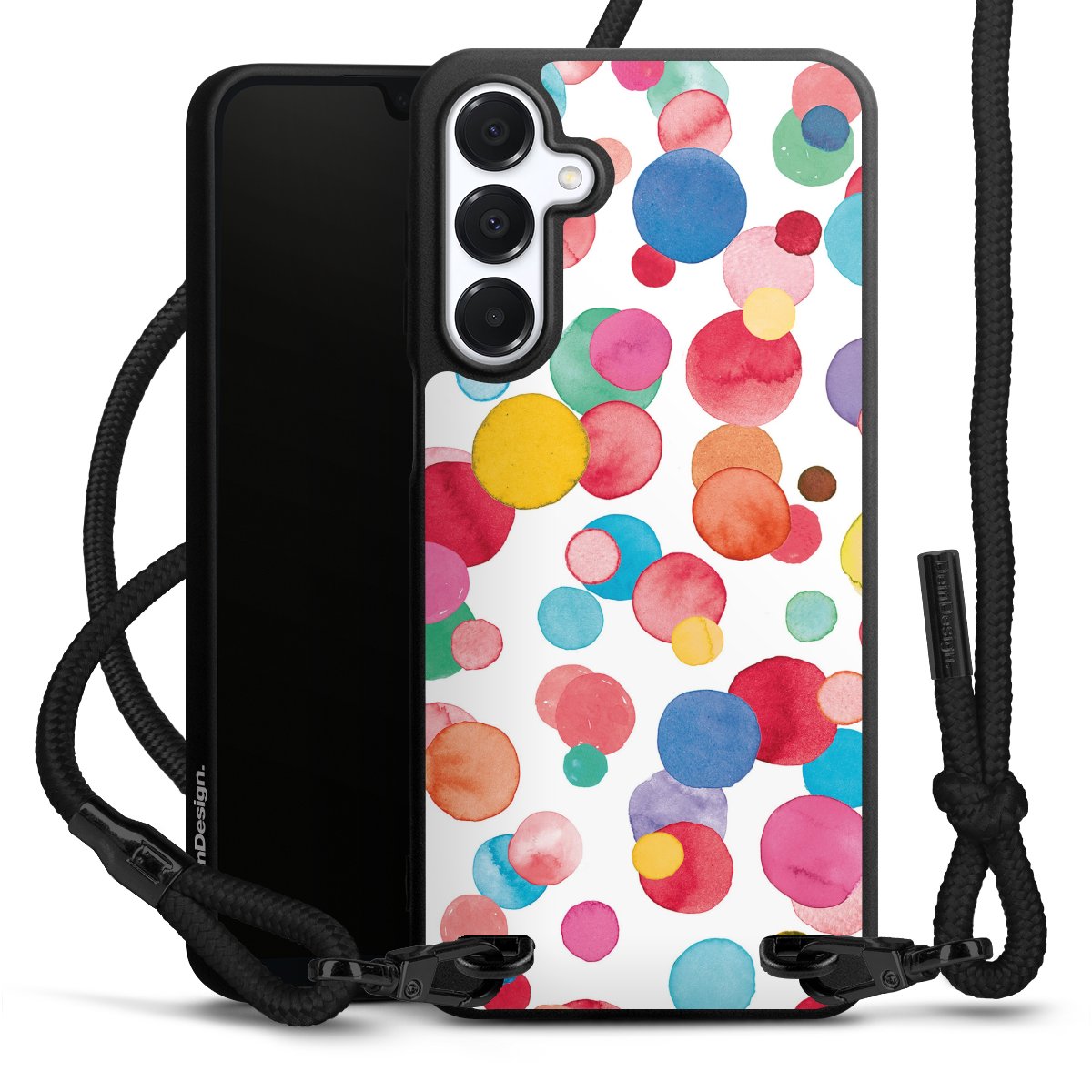 We use the solid direct print process for this phone case, which is why the print area only covers the back and the edge remains unprinted. The case to wear around your neck can be ordered unprinted, fully printed, or partially printed. For your design, either choose one of our exclusive shop motifs or get creative and create your own design, for example with photos and overlays. Design your own personal trend accessory and make an individual statement on the streets!