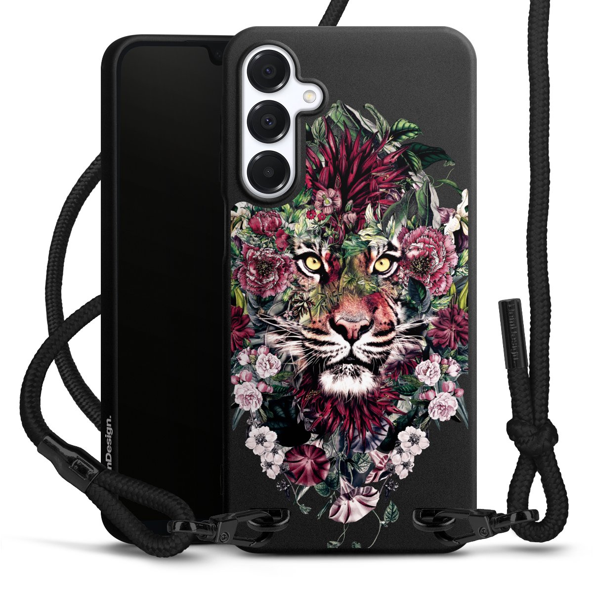 The matt black silicone case is made of flexible TPU (thermoplastic polyurethane) and offers robust protection. The durable, unbreakable material makes the cover flexible and dimensionally stable at the same time. The matte surface makes your design stand out more and is less susceptible to fingerprints and dirt. The stylish trend accessory fits comfortably in the hand and is perfectly complemented by the fabric (polyester) mobile phone strap. The braided fabric strap is approx. 1.70 metres long with a diameter of approx. 0.5 cm. Due to the special knotting technique, the length of the strap can be adjusted by simply pulling it, so that you can adapt it individually to your wishes. The practical case to wear around your neck is available with the fabric strap in black. As a little icing on the cake, we have provided the strap with a chic metal fastener in matt black. The strap is securely fastened to the case with loops made of high-quality genuine leather and press studs. The ends of the fabric strap are covered with metallic end caps and thus protected from fraying.