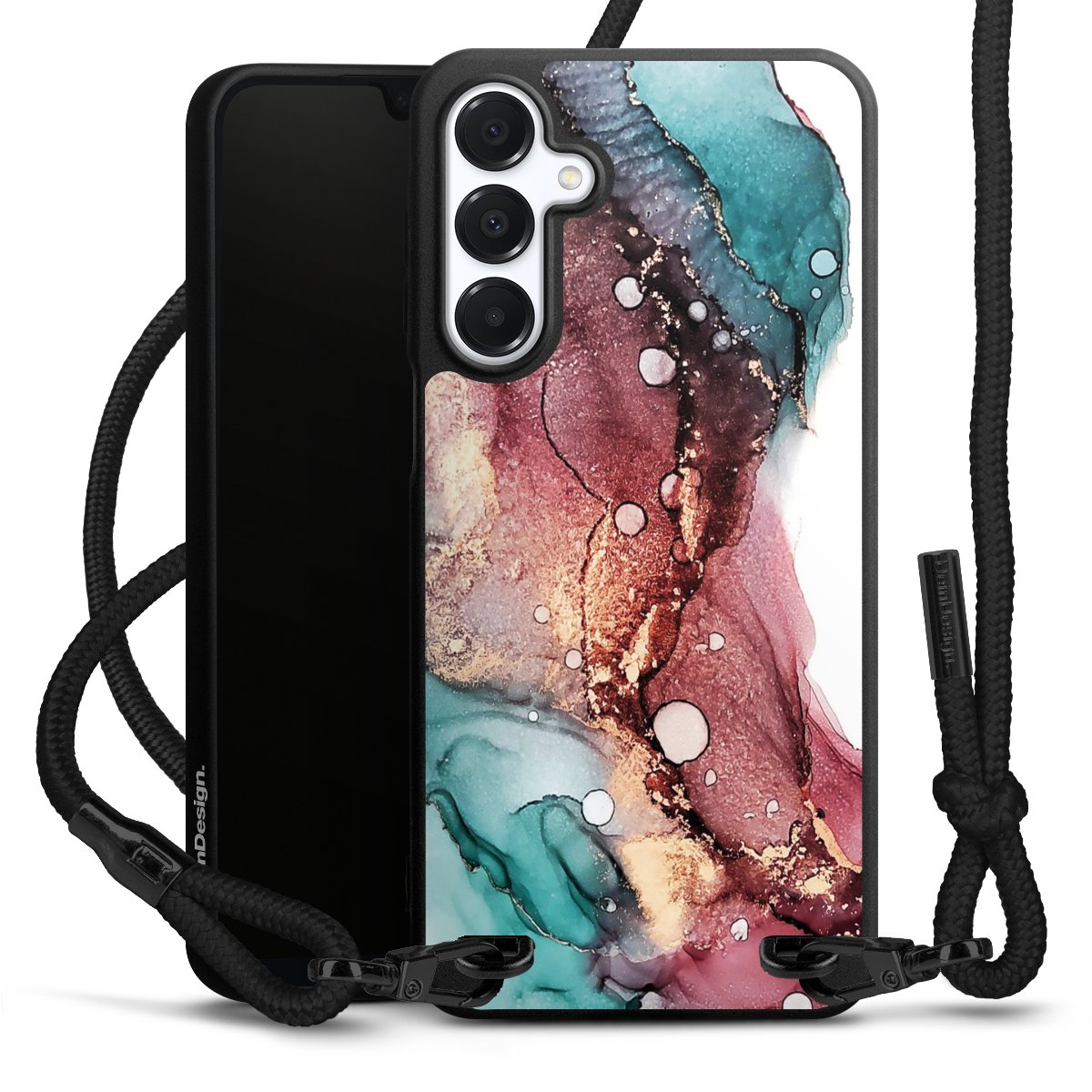 We use the solid direct print process for this phone case, which is why the print area only covers the back and the edge remains unprinted. The case to wear around your neck can be ordered unprinted, fully printed, or partially printed. For your design, either choose one of our exclusive shop motifs or get creative and create your own design, for example with photos and overlays. Design your own personal trend accessory and make an individual statement on the streets!