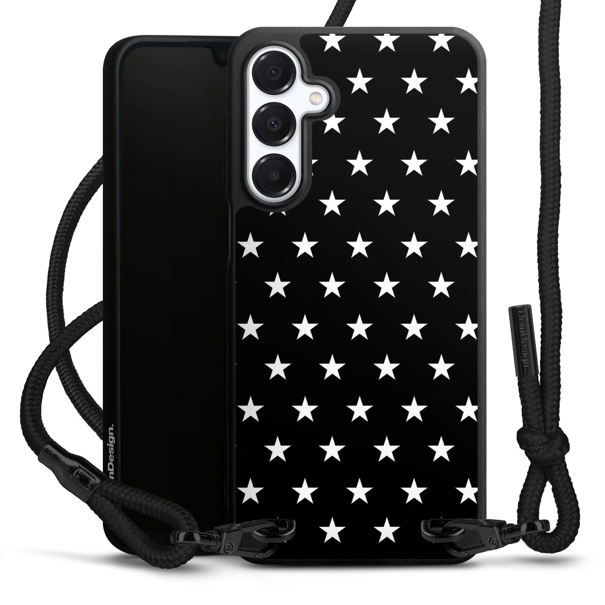 We use the solid direct print process for this phone case, which is why the print area only covers the back and the edge remains unprinted. The case to wear around your neck can be ordered unprinted, fully printed, or partially printed. For your design, either choose one of our exclusive shop motifs or get creative and create your own design, for example with photos and overlays. Design your own personal trend accessory and make an individual statement on the streets!