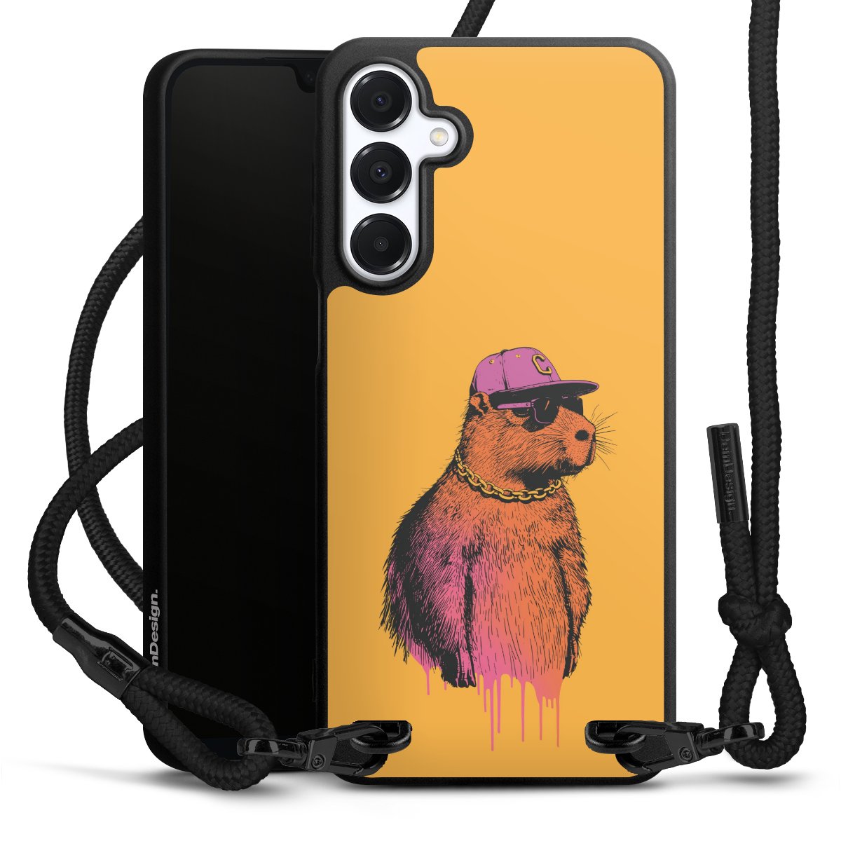 We use the solid direct print process for this phone case, which is why the print area only covers the back and the edge remains unprinted. The case to wear around your neck can be ordered unprinted, fully printed, or partially printed. For your design, either choose one of our exclusive shop motifs or get creative and create your own design, for example with photos and overlays. Design your own personal trend accessory and make an individual statement on the streets!