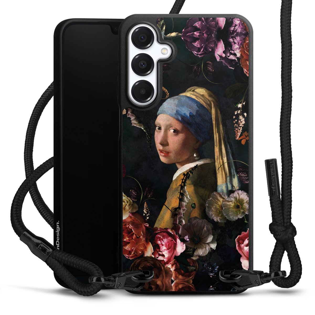 The matt black silicone case is made of flexible TPU (thermoplastic polyurethane) and offers robust protection. The durable, unbreakable material makes the cover flexible and dimensionally stable at the same time. The matte surface makes your design stand out more and is less susceptible to fingerprints and dirt. The stylish trend accessory fits comfortably in the hand and is perfectly complemented by the fabric (polyester) mobile phone strap. The braided fabric strap is approx. 1.70 metres long with a diameter of approx. 0.5 cm. Due to the special knotting technique, the length of the strap can be adjusted by simply pulling it, so that you can adapt it individually to your wishes. The practical case to wear around your neck is available with the fabric strap in black. As a little icing on the cake, we have provided the strap with a chic metal fastener in matt black. The strap is securely fastened to the case with loops made of high-quality genuine leather and press studs. The ends of the fabric strap are covered with metallic end caps and thus protected from fraying.