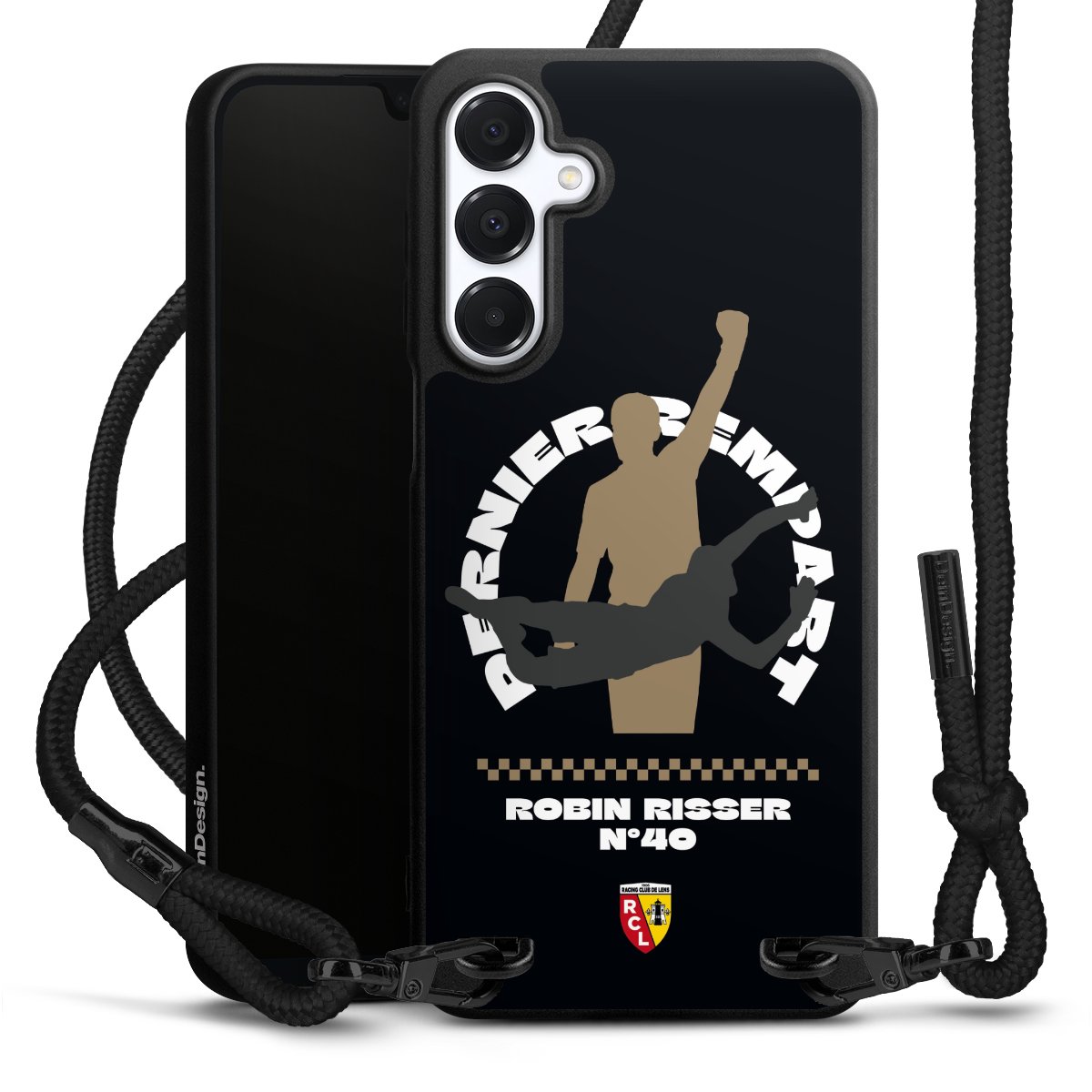 The matt black silicone case is made of flexible TPU (thermoplastic polyurethane) and offers robust protection. The durable, unbreakable material makes the cover flexible and dimensionally stable at the same time. The matte surface makes your design stand out more and is less susceptible to fingerprints and dirt. The stylish trend accessory fits comfortably in the hand and is perfectly complemented by the fabric (polyester) mobile phone strap. The braided fabric strap is approx. 1.70 metres long with a diameter of approx. 0.5 cm. Due to the special knotting technique, the length of the strap can be adjusted by simply pulling it, so that you can adapt it individually to your wishes. The practical case to wear around your neck is available with the fabric strap in black. As a little icing on the cake, we have provided the strap with a chic metal fastener in matt black. The strap is securely fastened to the case with loops made of high-quality genuine leather and press studs. The ends of the fabric strap are covered with metallic end caps and thus protected from fraying.