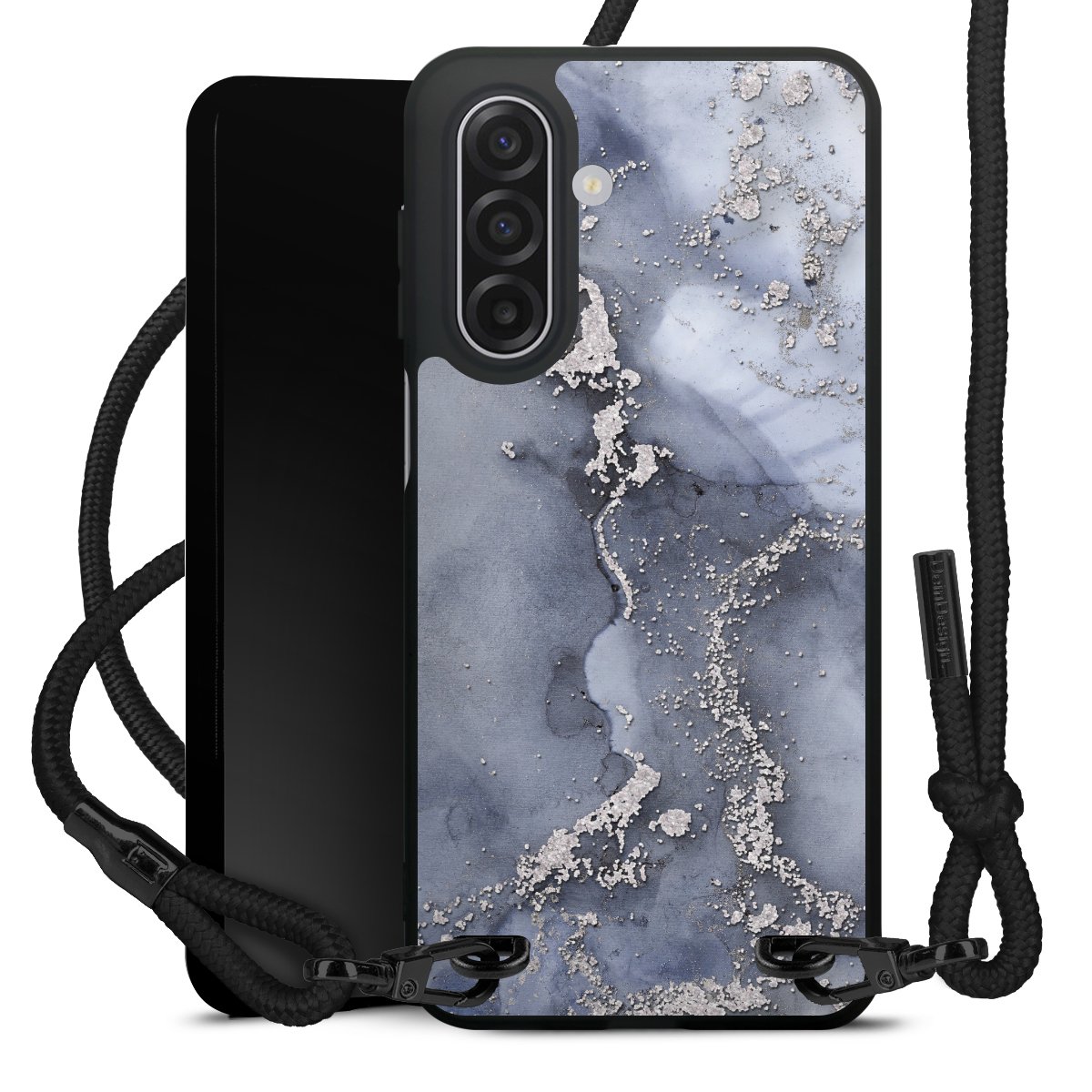 The matt black silicone case is made of flexible TPU (thermoplastic polyurethane) and offers robust protection. The durable, unbreakable material makes the cover flexible and dimensionally stable at the same time. The matte surface makes your design stand out more and is less susceptible to fingerprints and dirt. The stylish trend accessory fits comfortably in the hand and is perfectly complemented by the fabric (polyester) mobile phone strap. The braided fabric strap is approx. 1.70 metres long with a diameter of approx. 0.5 cm. Due to the special knotting technique, the length of the strap can be adjusted by simply pulling it, so that you can adapt it individually to your wishes. The practical case to wear around your neck is available with the fabric strap in black. As a little icing on the cake, we have provided the strap with a chic metal fastener in matt black. The strap is securely fastened to the case with loops made of high-quality genuine leather and press studs. The ends of the fabric strap are covered with metallic end caps and thus protected from fraying.