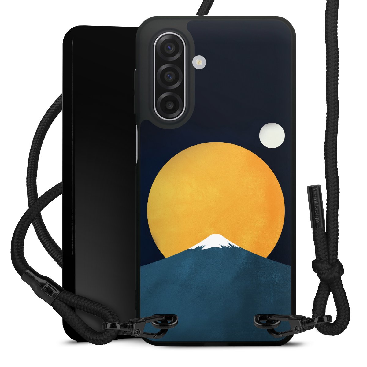 The matt black silicone case is made of flexible TPU (thermoplastic polyurethane) and offers robust protection. The durable, unbreakable material makes the cover flexible and dimensionally stable at the same time. The matte surface makes your design stand out more and is less susceptible to fingerprints and dirt. The stylish trend accessory fits comfortably in the hand and is perfectly complemented by the fabric (polyester) mobile phone strap. The braided fabric strap is approx. 1.70 metres long with a diameter of approx. 0.5 cm. Due to the special knotting technique, the length of the strap can be adjusted by simply pulling it, so that you can adapt it individually to your wishes. The practical case to wear around your neck is available with the fabric strap in black. As a little icing on the cake, we have provided the strap with a chic metal fastener in matt black. The strap is securely fastened to the case with loops made of high-quality genuine leather and press studs. The ends of the fabric strap are covered with metallic end caps and thus protected from fraying.