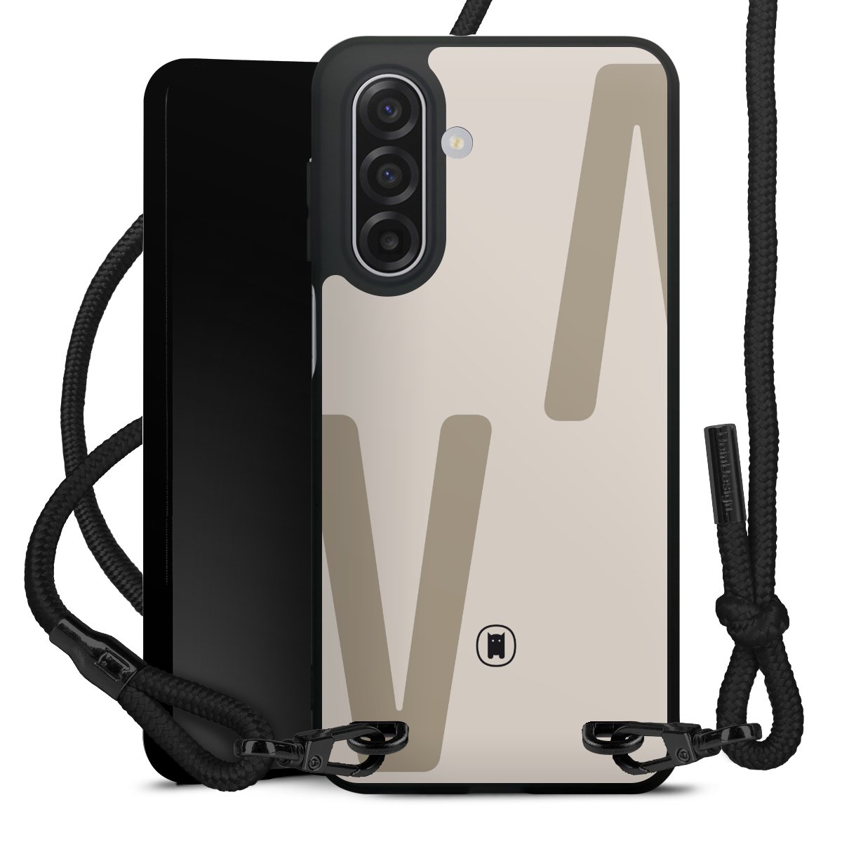 The matt black silicone case is made of flexible TPU (thermoplastic polyurethane) and offers robust protection. The durable, unbreakable material makes the cover flexible and dimensionally stable at the same time. The matte surface makes your design stand out more and is less susceptible to fingerprints and dirt. The stylish trend accessory fits comfortably in the hand and is perfectly complemented by the fabric (polyester) mobile phone strap. The braided fabric strap is approx. 1.70 metres long with a diameter of approx. 0.5 cm. Due to the special knotting technique, the length of the strap can be adjusted by simply pulling it, so that you can adapt it individually to your wishes. The practical case to wear around your neck is available with the fabric strap in black. As a little icing on the cake, we have provided the strap with a chic metal fastener in matt black. The strap is securely fastened to the case with loops made of high-quality genuine leather and press studs. The ends of the fabric strap are covered with metallic end caps and thus protected from fraying.