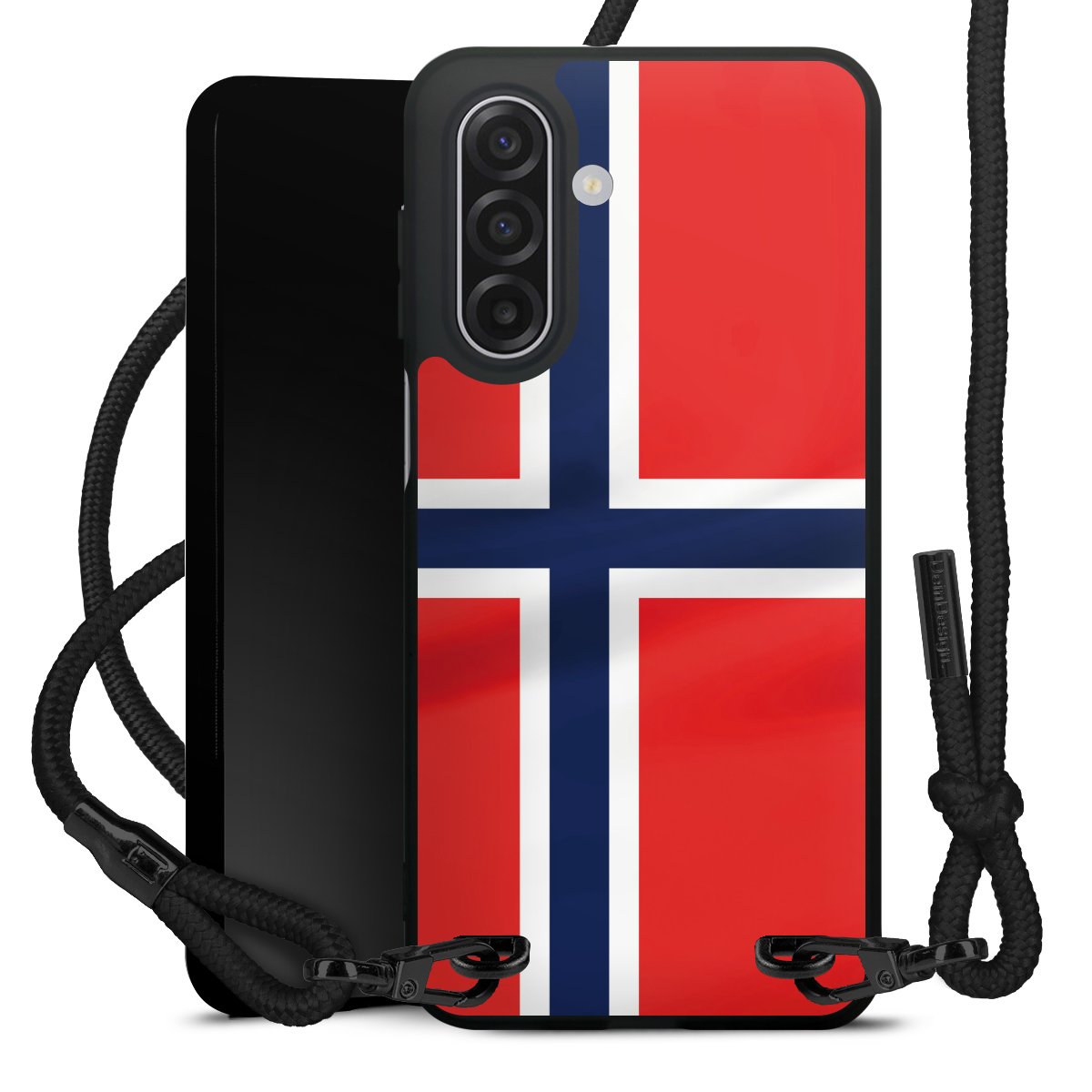 The matt black silicone case is made of flexible TPU (thermoplastic polyurethane) and offers robust protection. The durable, unbreakable material makes the cover flexible and dimensionally stable at the same time. The matte surface makes your design stand out more and is less susceptible to fingerprints and dirt. The stylish trend accessory fits comfortably in the hand and is perfectly complemented by the fabric (polyester) mobile phone strap. The braided fabric strap is approx. 1.70 metres long with a diameter of approx. 0.5 cm. Due to the special knotting technique, the length of the strap can be adjusted by simply pulling it, so that you can adapt it individually to your wishes. The practical case to wear around your neck is available with the fabric strap in black. As a little icing on the cake, we have provided the strap with a chic metal fastener in matt black. The strap is securely fastened to the case with loops made of high-quality genuine leather and press studs. The ends of the fabric strap are covered with metallic end caps and thus protected from fraying.