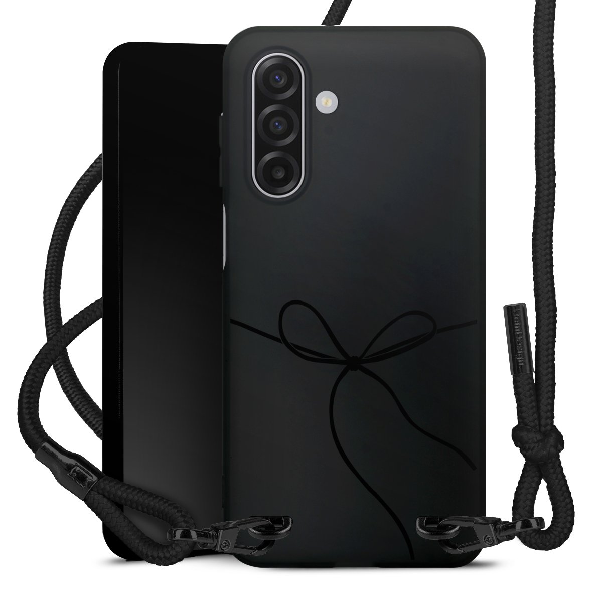 The matt black silicone case is made of flexible TPU (thermoplastic polyurethane) and offers robust protection. The durable, unbreakable material makes the cover flexible and dimensionally stable at the same time. The matte surface makes your design stand out more and is less susceptible to fingerprints and dirt. The stylish trend accessory fits comfortably in the hand and is perfectly complemented by the fabric (polyester) mobile phone strap. The braided fabric strap is approx. 1.70 metres long with a diameter of approx. 0.5 cm. Due to the special knotting technique, the length of the strap can be adjusted by simply pulling it, so that you can adapt it individually to your wishes. The practical case to wear around your neck is available with the fabric strap in black. As a little icing on the cake, we have provided the strap with a chic metal fastener in matt black. The strap is securely fastened to the case with loops made of high-quality genuine leather and press studs. The ends of the fabric strap are covered with metallic end caps and thus protected from fraying.
