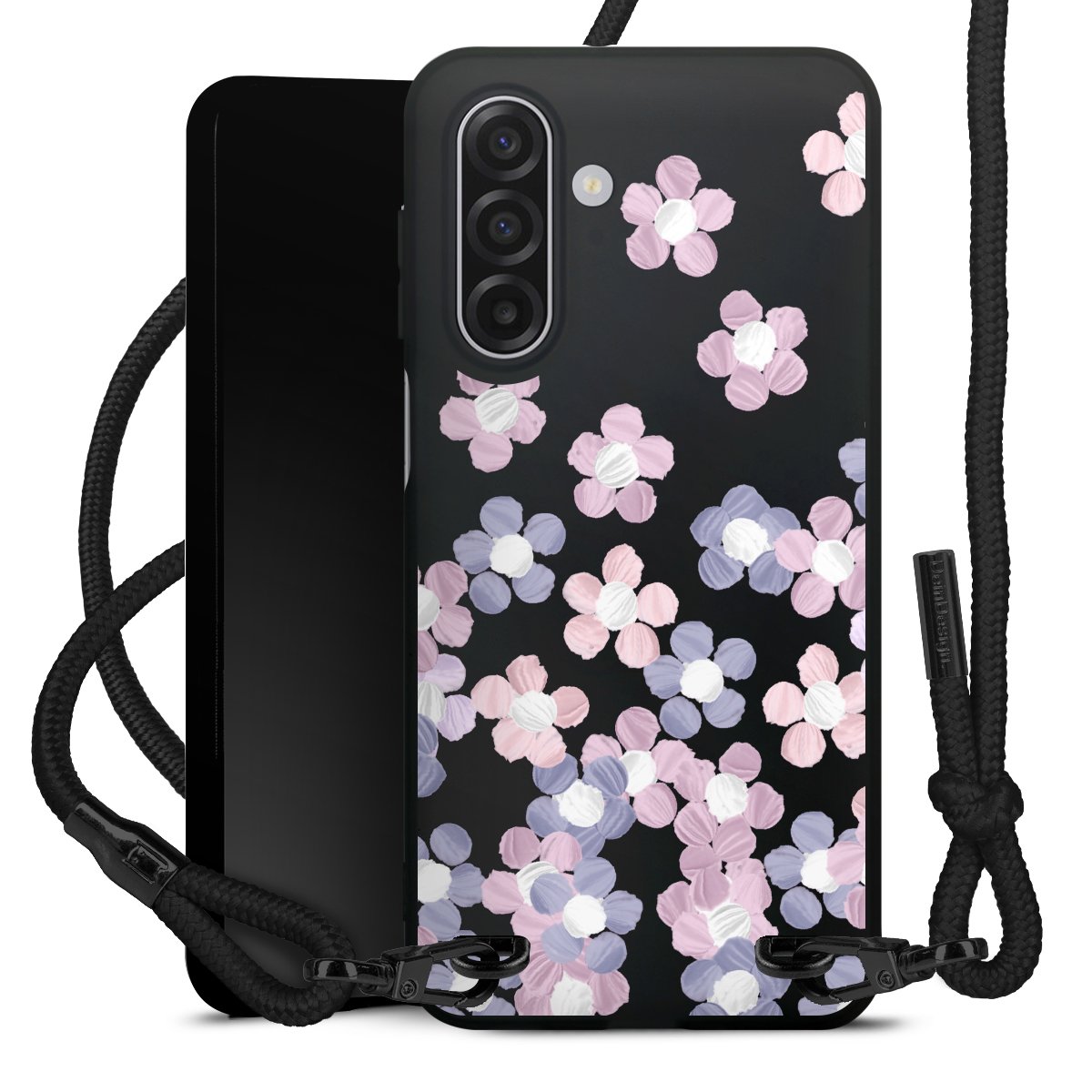 The matt black silicone case is made of flexible TPU (thermoplastic polyurethane) and offers robust protection. The durable, unbreakable material makes the cover flexible and dimensionally stable at the same time. The matte surface makes your design stand out more and is less susceptible to fingerprints and dirt. The stylish trend accessory fits comfortably in the hand and is perfectly complemented by the fabric (polyester) mobile phone strap. The braided fabric strap is approx. 1.70 metres long with a diameter of approx. 0.5 cm. Due to the special knotting technique, the length of the strap can be adjusted by simply pulling it, so that you can adapt it individually to your wishes. The practical case to wear around your neck is available with the fabric strap in black. As a little icing on the cake, we have provided the strap with a chic metal fastener in matt black. The strap is securely fastened to the case with loops made of high-quality genuine leather and press studs. The ends of the fabric strap are covered with metallic end caps and thus protected from fraying.
