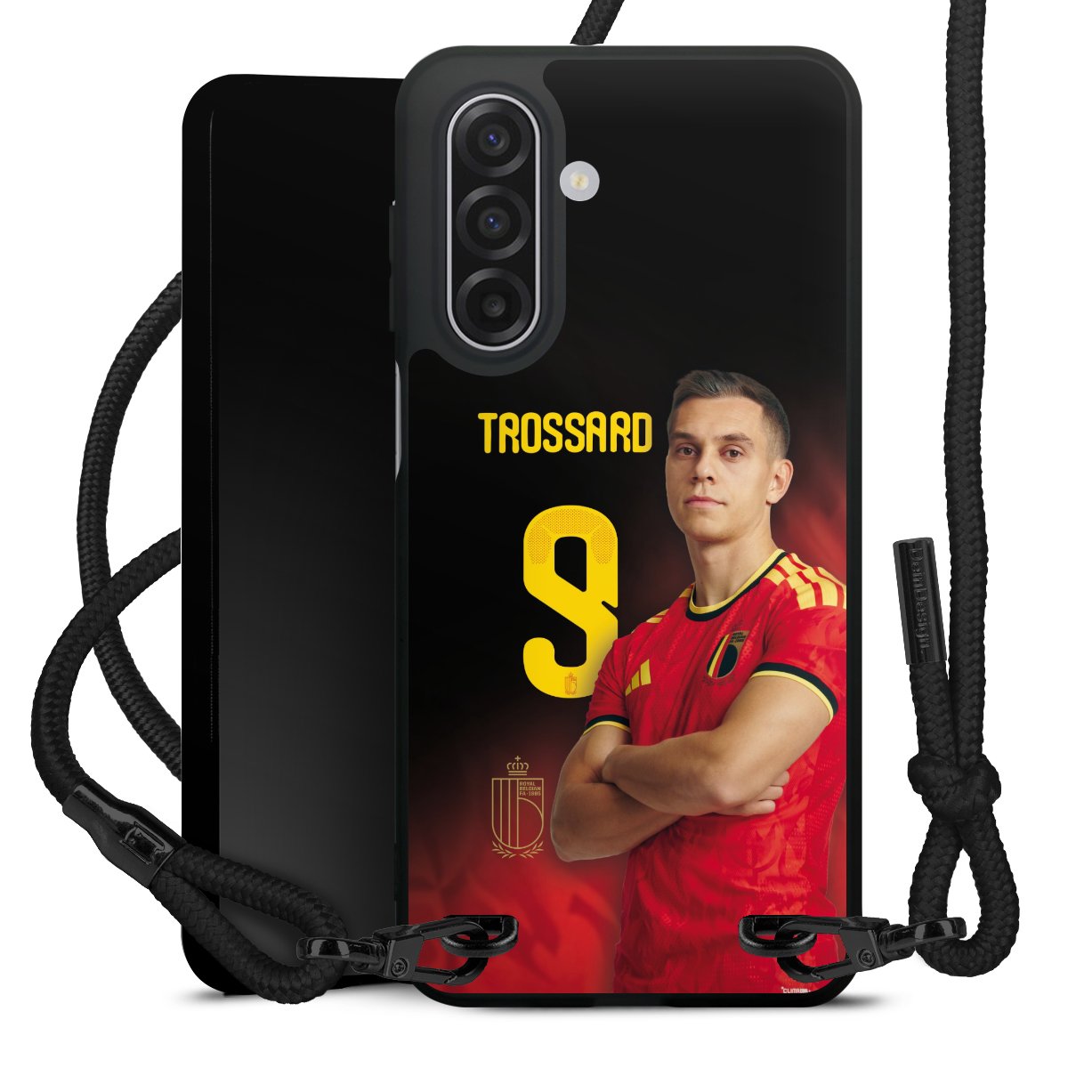 The matt black silicone case is made of flexible TPU (thermoplastic polyurethane) and offers robust protection. The durable, unbreakable material makes the cover flexible and dimensionally stable at the same time. The matte surface makes your design stand out more and is less susceptible to fingerprints and dirt. The stylish trend accessory fits comfortably in the hand and is perfectly complemented by the fabric (polyester) mobile phone strap. The braided fabric strap is approx. 1.70 metres long with a diameter of approx. 0.5 cm. Due to the special knotting technique, the length of the strap can be adjusted by simply pulling it, so that you can adapt it individually to your wishes. The practical case to wear around your neck is available with the fabric strap in black. As a little icing on the cake, we have provided the strap with a chic metal fastener in matt black. The strap is securely fastened to the case with loops made of high-quality genuine leather and press studs. The ends of the fabric strap are covered with metallic end caps and thus protected from fraying.