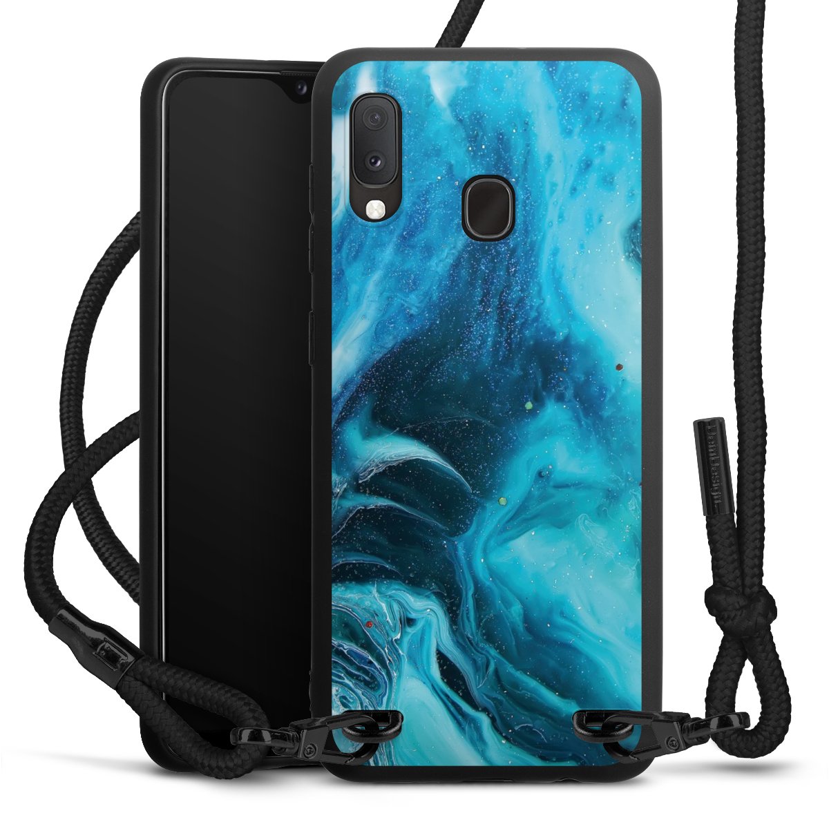 We use the solid direct print process for this phone case, which is why the print area only covers the back and the edge remains unprinted. The case to wear around your neck can be ordered unprinted, fully printed, or partially printed. For your design, either choose one of our exclusive shop motifs or get creative and create your own design, for example with photos and overlays. Design your own personal trend accessory and make an individual statement on the streets!