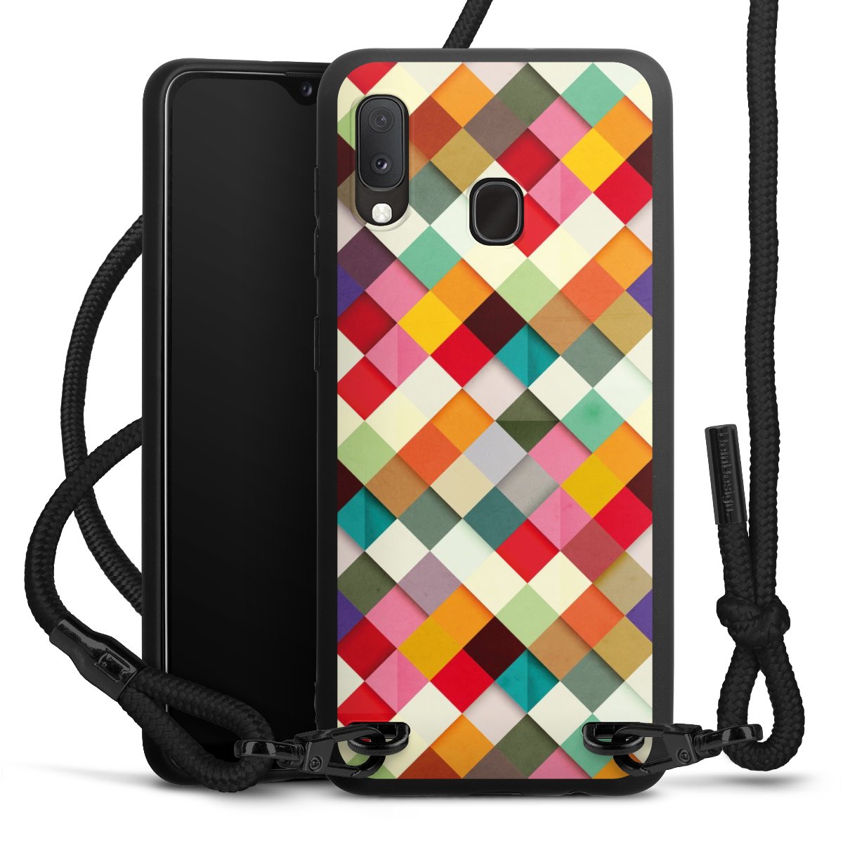 We use the solid direct print process for this phone case, which is why the print area only covers the back and the edge remains unprinted. The case to wear around your neck can be ordered unprinted, fully printed, or partially printed. For your design, either choose one of our exclusive shop motifs or get creative and create your own design, for example with photos and overlays. Design your own personal trend accessory and make an individual statement on the streets!