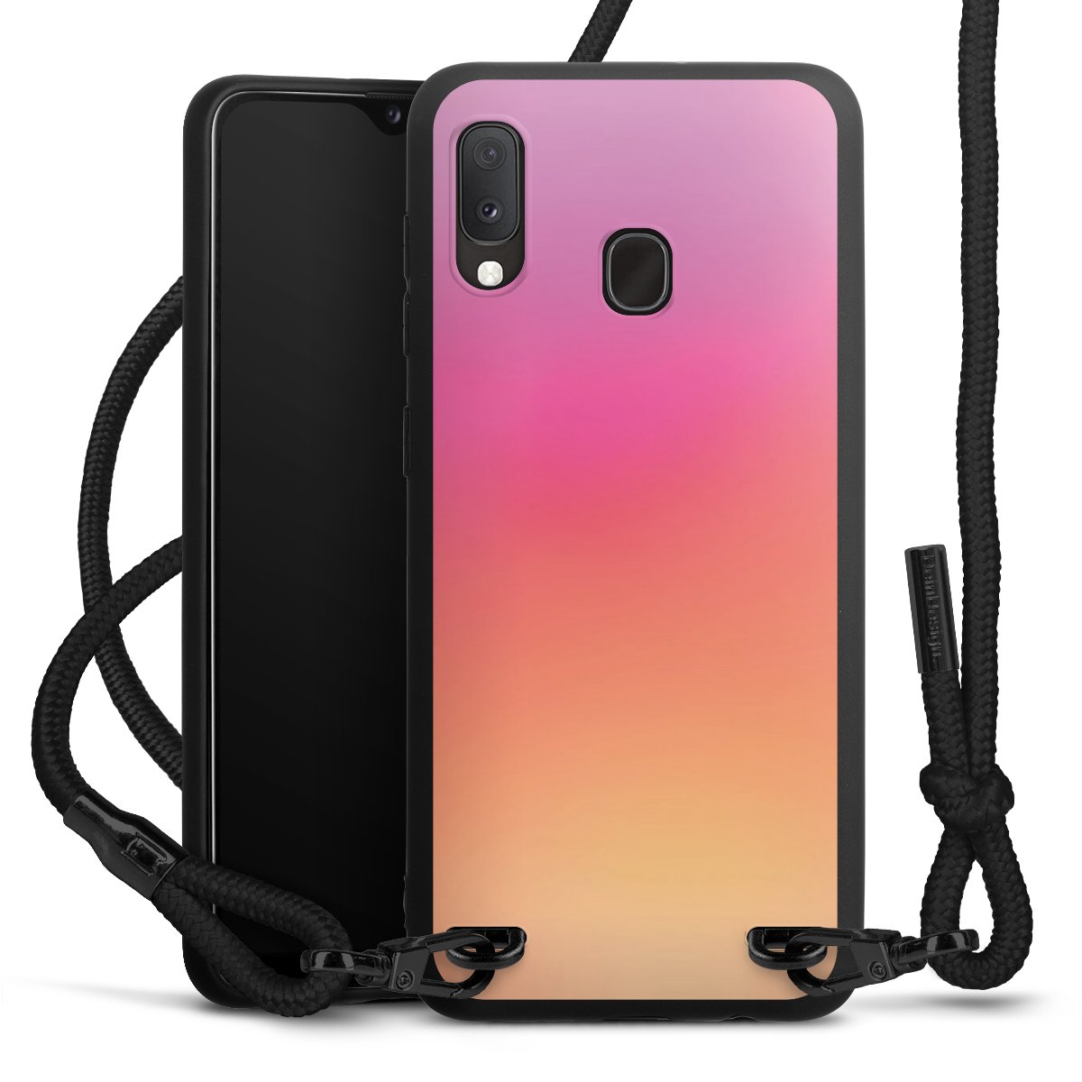 We use the solid direct print process for this phone case, which is why the print area only covers the back and the edge remains unprinted. The case to wear around your neck can be ordered unprinted, fully printed, or partially printed. For your design, either choose one of our exclusive shop motifs or get creative and create your own design, for example with photos and overlays. Design your own personal trend accessory and make an individual statement on the streets!