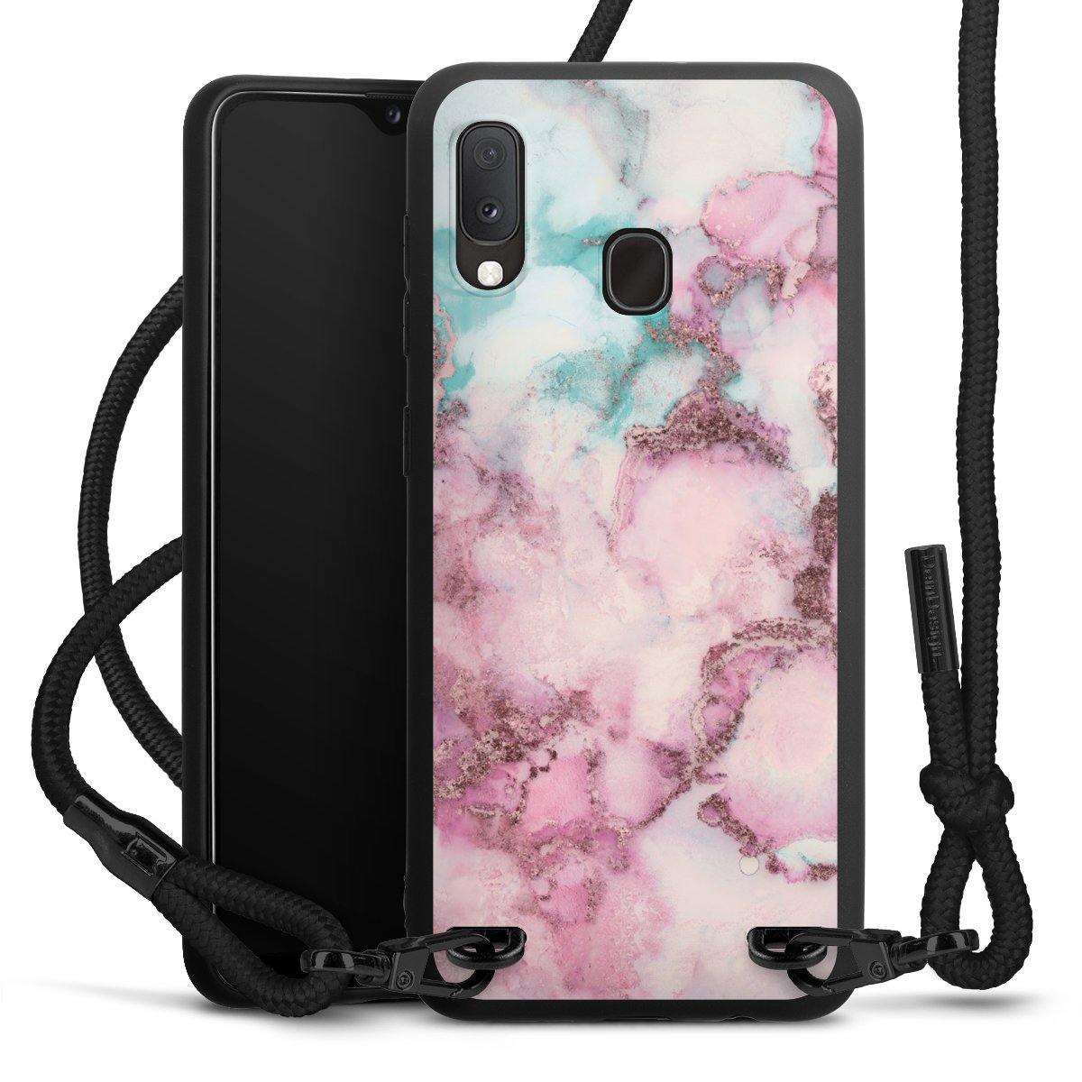 We use the solid direct print process for this phone case, which is why the print area only covers the back and the edge remains unprinted. The case to wear around your neck can be ordered unprinted, fully printed, or partially printed. For your design, either choose one of our exclusive shop motifs or get creative and create your own design, for example with photos and overlays. Design your own personal trend accessory and make an individual statement on the streets!