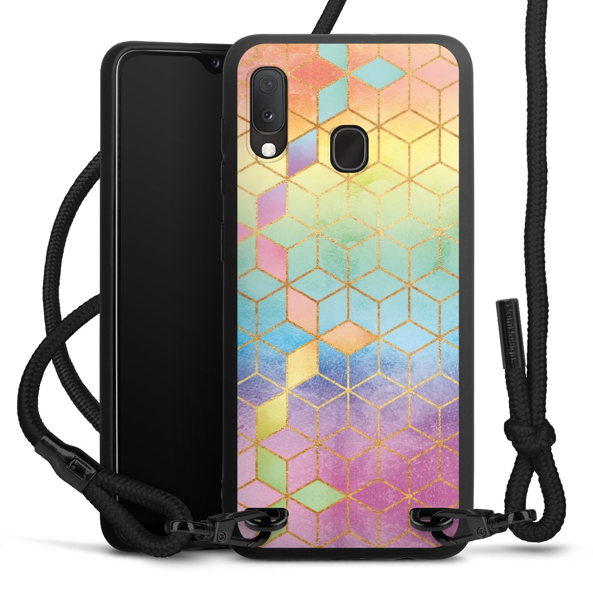 We use the solid direct print process for this phone case, which is why the print area only covers the back and the edge remains unprinted. The case to wear around your neck can be ordered unprinted, fully printed, or partially printed. For your design, either choose one of our exclusive shop motifs or get creative and create your own design, for example with photos and overlays. Design your own personal trend accessory and make an individual statement on the streets!