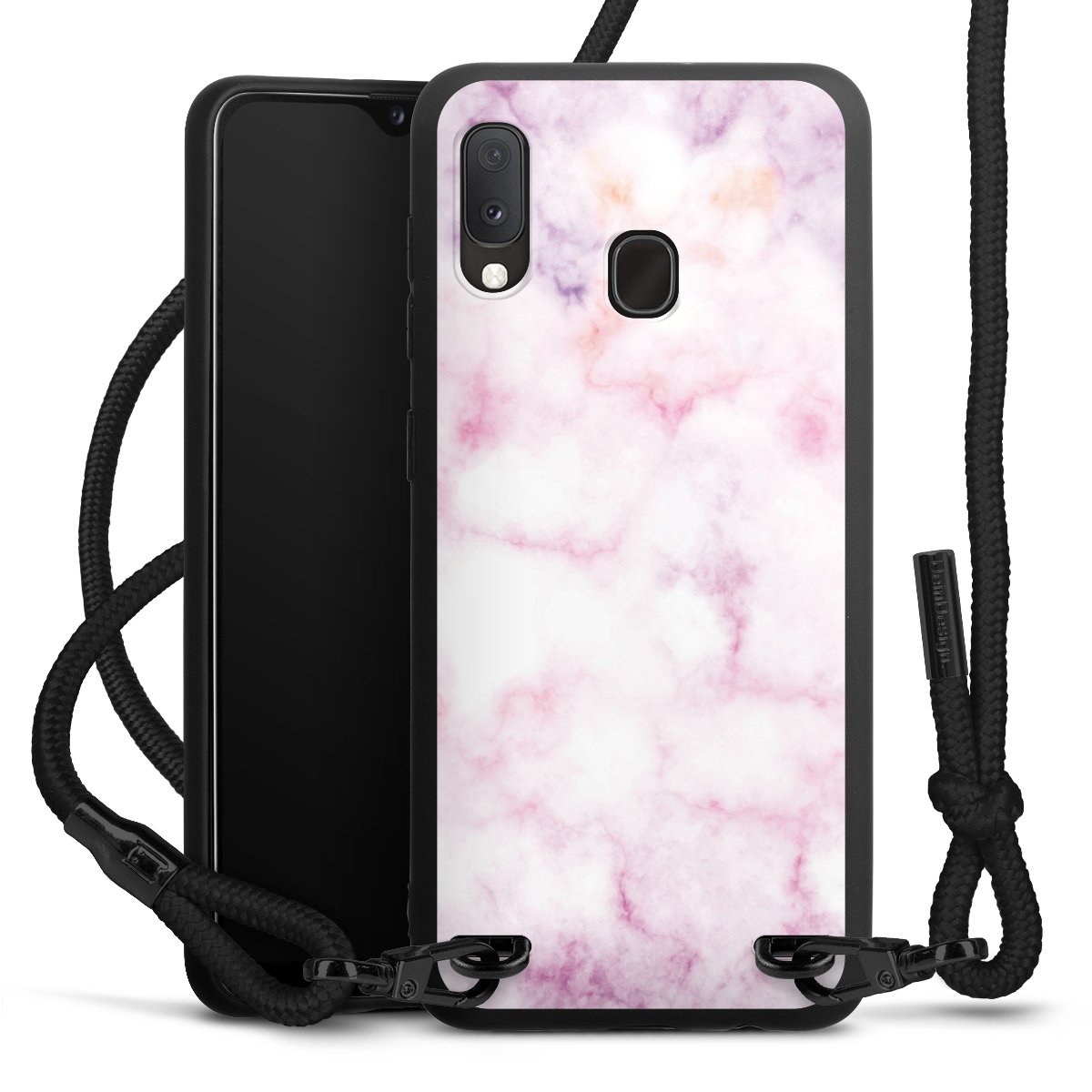 We use the solid direct print process for this phone case, which is why the print area only covers the back and the edge remains unprinted. The case to wear around your neck can be ordered unprinted, fully printed, or partially printed. For your design, either choose one of our exclusive shop motifs or get creative and create your own design, for example with photos and overlays. Design your own personal trend accessory and make an individual statement on the streets!