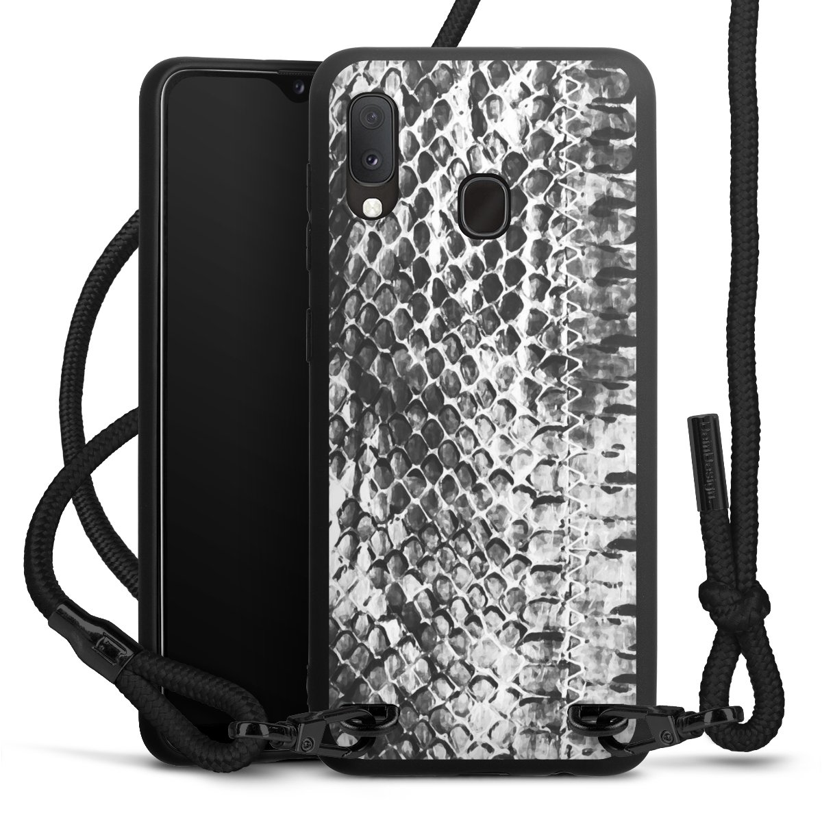 The matt black silicone case is made of flexible TPU (thermoplastic polyurethane) and offers robust protection. The durable, unbreakable material makes the cover flexible and dimensionally stable at the same time. The matte surface makes your design stand out more and is less susceptible to fingerprints and dirt. The stylish trend accessory fits comfortably in the hand and is perfectly complemented by the fabric (polyester) mobile phone strap. The braided fabric strap is approx. 1.70 metres long with a diameter of approx. 0.5 cm. Due to the special knotting technique, the length of the strap can be adjusted by simply pulling it, so that you can adapt it individually to your wishes. The practical case to wear around your neck is available with the fabric strap in black. As a little icing on the cake, we have provided the strap with a chic metal fastener in matt black. The strap is securely fastened to the case with loops made of high-quality genuine leather and press studs. The ends of the fabric strap are covered with metallic end caps and thus protected from fraying.