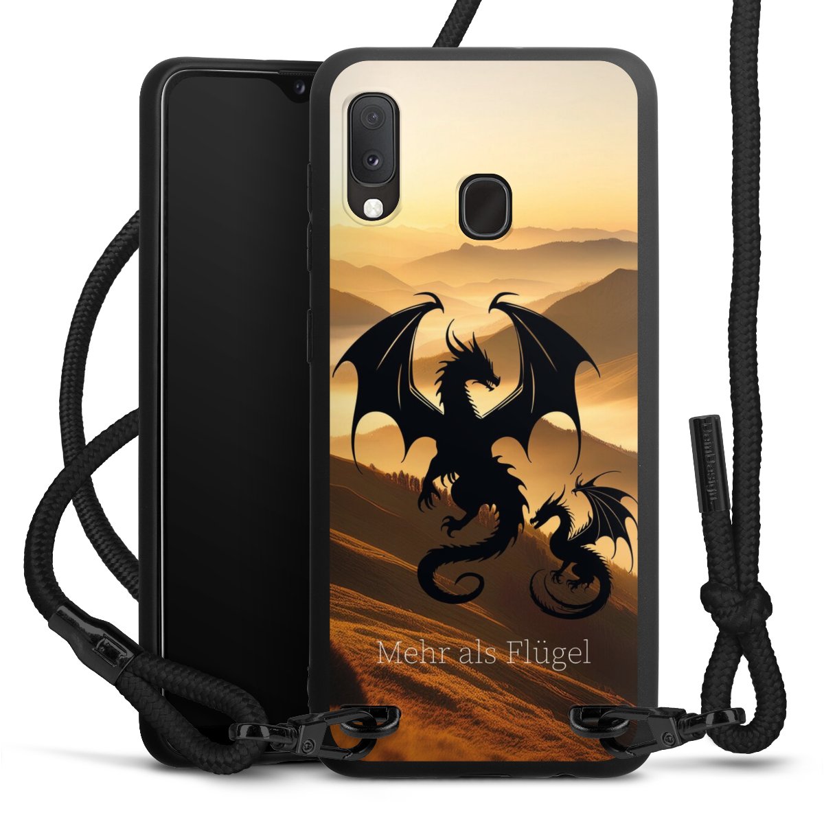 The matt black silicone case is made of flexible TPU (thermoplastic polyurethane) and offers robust protection. The durable, unbreakable material makes the cover flexible and dimensionally stable at the same time. The matte surface makes your design stand out more and is less susceptible to fingerprints and dirt. The stylish trend accessory fits comfortably in the hand and is perfectly complemented by the fabric (polyester) mobile phone strap. The braided fabric strap is approx. 1.70 metres long with a diameter of approx. 0.5 cm. Due to the special knotting technique, the length of the strap can be adjusted by simply pulling it, so that you can adapt it individually to your wishes. The practical case to wear around your neck is available with the fabric strap in black. As a little icing on the cake, we have provided the strap with a chic metal fastener in matt black. The strap is securely fastened to the case with loops made of high-quality genuine leather and press studs. The ends of the fabric strap are covered with metallic end caps and thus protected from fraying.