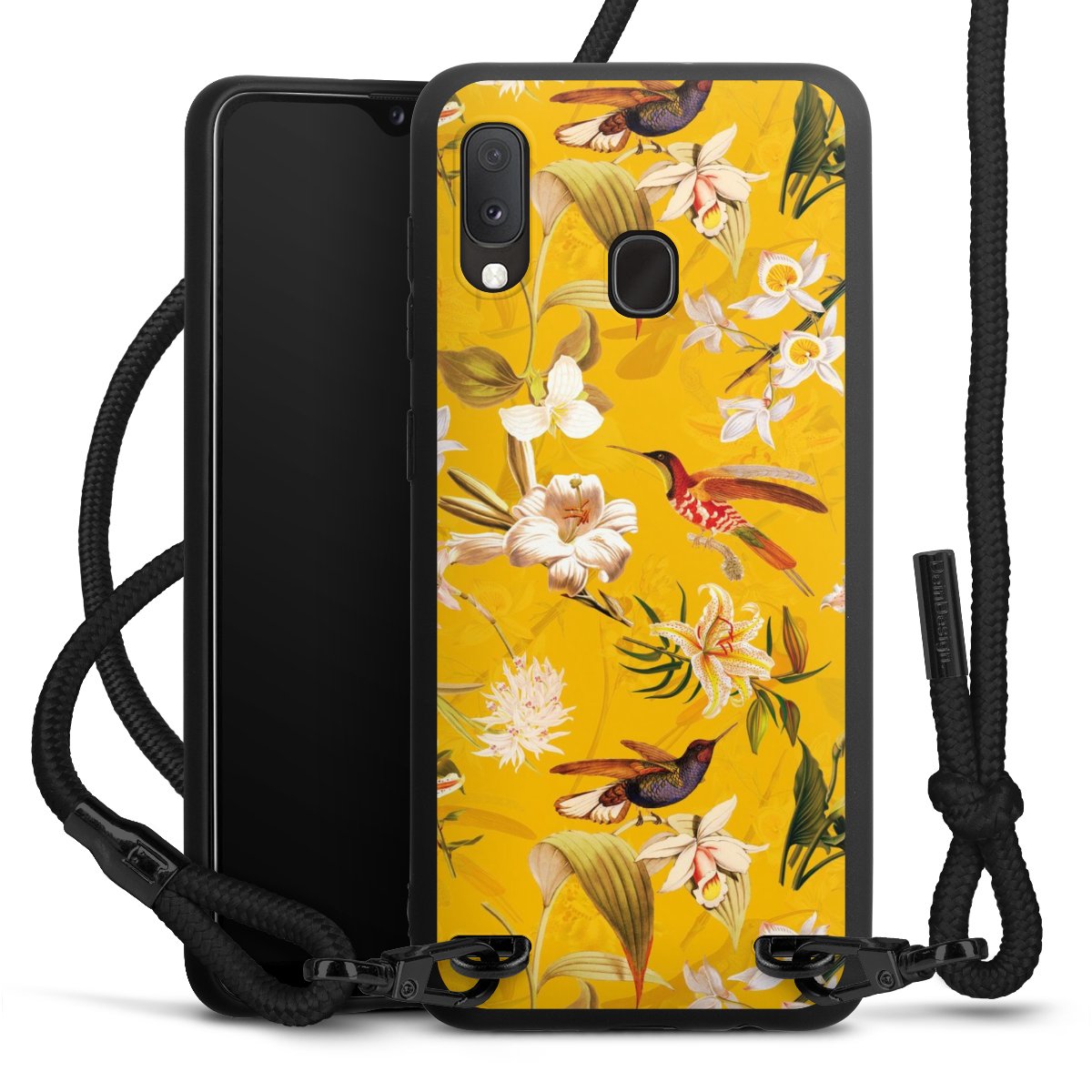 We use the solid direct print process for this phone case, which is why the print area only covers the back and the edge remains unprinted. The case to wear around your neck can be ordered unprinted, fully printed, or partially printed. For your design, either choose one of our exclusive shop motifs or get creative and create your own design, for example with photos and overlays. Design your own personal trend accessory and make an individual statement on the streets!