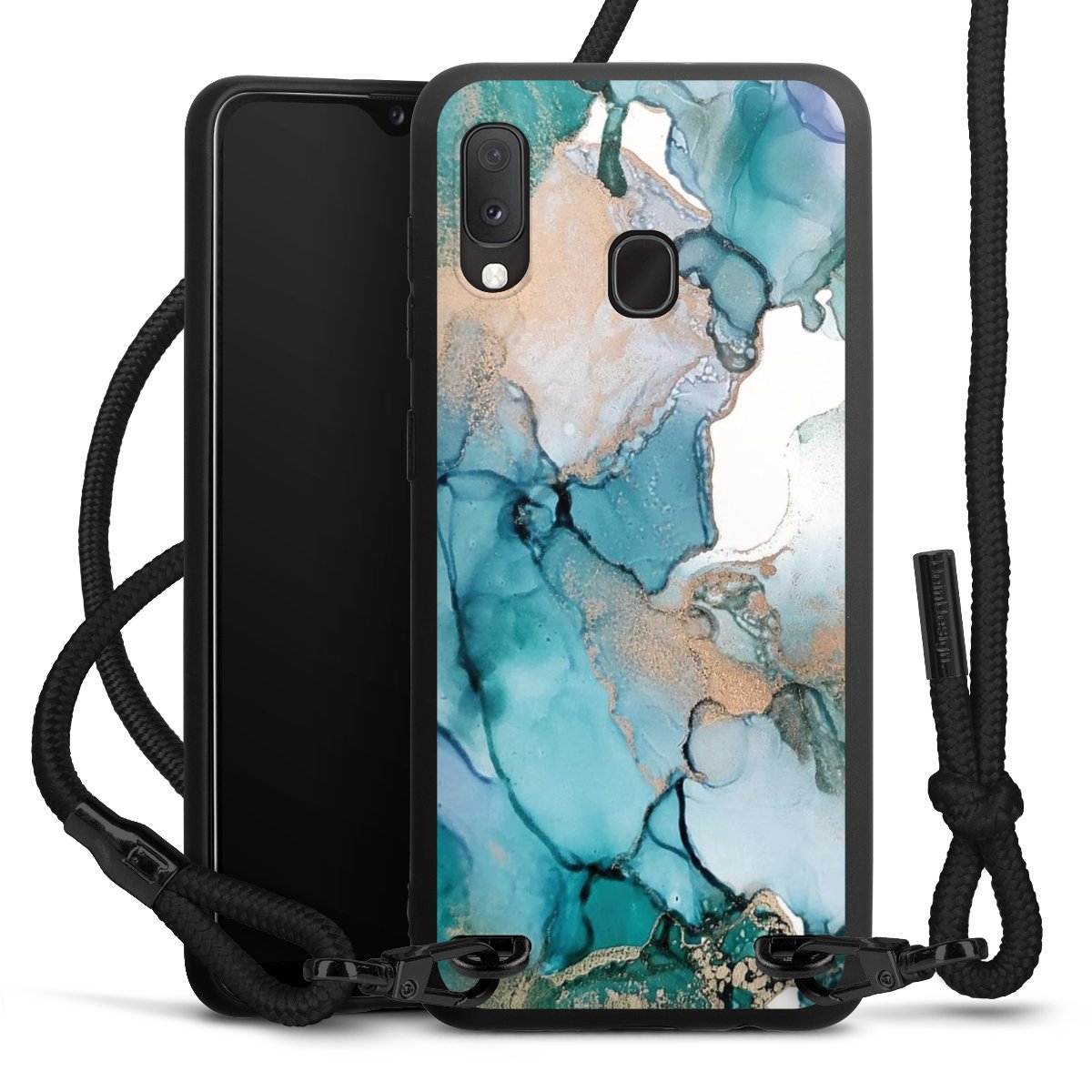 We use the solid direct print process for this phone case, which is why the print area only covers the back and the edge remains unprinted. The case to wear around your neck can be ordered unprinted, fully printed, or partially printed. For your design, either choose one of our exclusive shop motifs or get creative and create your own design, for example with photos and overlays. Design your own personal trend accessory and make an individual statement on the streets!