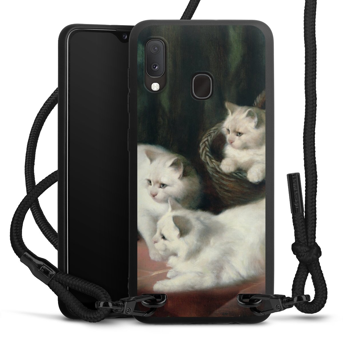 The matt black silicone case is made of flexible TPU (thermoplastic polyurethane) and offers robust protection. The durable, unbreakable material makes the cover flexible and dimensionally stable at the same time. The matte surface makes your design stand out more and is less susceptible to fingerprints and dirt. The stylish trend accessory fits comfortably in the hand and is perfectly complemented by the fabric (polyester) mobile phone strap. The braided fabric strap is approx. 1.70 metres long with a diameter of approx. 0.5 cm. Due to the special knotting technique, the length of the strap can be adjusted by simply pulling it, so that you can adapt it individually to your wishes. The practical case to wear around your neck is available with the fabric strap in black. As a little icing on the cake, we have provided the strap with a chic metal fastener in matt black. The strap is securely fastened to the case with loops made of high-quality genuine leather and press studs. The ends of the fabric strap are covered with metallic end caps and thus protected from fraying.