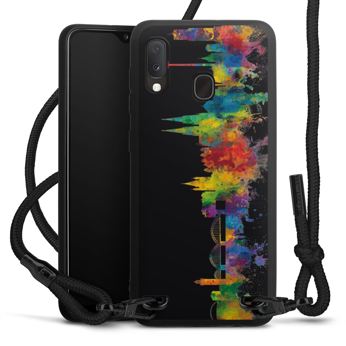 We use the solid direct print process for this phone case, which is why the print area only covers the back and the edge remains unprinted. The case to wear around your neck can be ordered unprinted, fully printed, or partially printed. For your design, either choose one of our exclusive shop motifs or get creative and create your own design, for example with photos and overlays. Design your own personal trend accessory and make an individual statement on the streets!