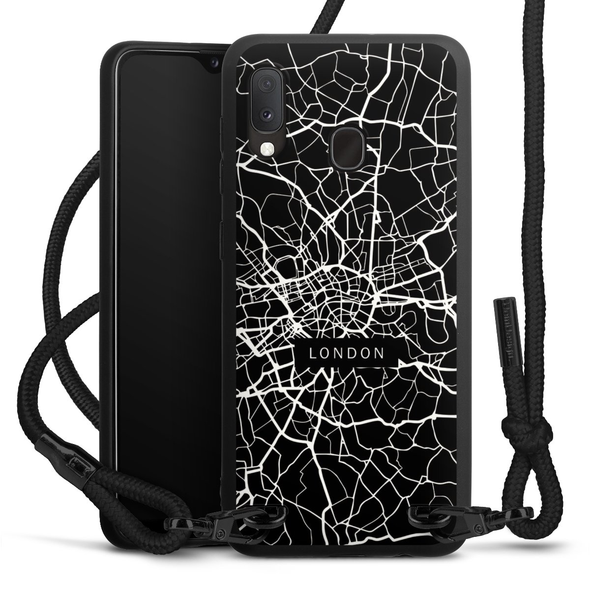 The matt black silicone case is made of flexible TPU (thermoplastic polyurethane) and offers robust protection. The durable, unbreakable material makes the cover flexible and dimensionally stable at the same time. The matte surface makes your design stand out more and is less susceptible to fingerprints and dirt. The stylish trend accessory fits comfortably in the hand and is perfectly complemented by the fabric (polyester) mobile phone strap. The braided fabric strap is approx. 1.70 metres long with a diameter of approx. 0.5 cm. Due to the special knotting technique, the length of the strap can be adjusted by simply pulling it, so that you can adapt it individually to your wishes. The practical case to wear around your neck is available with the fabric strap in black. As a little icing on the cake, we have provided the strap with a chic metal fastener in matt black. The strap is securely fastened to the case with loops made of high-quality genuine leather and press studs. The ends of the fabric strap are covered with metallic end caps and thus protected from fraying.