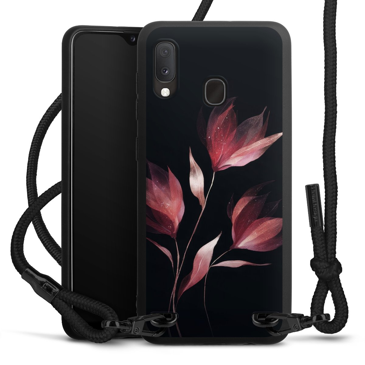 The matt black silicone case is made of flexible TPU (thermoplastic polyurethane) and offers robust protection. The durable, unbreakable material makes the cover flexible and dimensionally stable at the same time. The matte surface makes your design stand out more and is less susceptible to fingerprints and dirt. The stylish trend accessory fits comfortably in the hand and is perfectly complemented by the fabric (polyester) mobile phone strap. The braided fabric strap is approx. 1.70 metres long with a diameter of approx. 0.5 cm. Due to the special knotting technique, the length of the strap can be adjusted by simply pulling it, so that you can adapt it individually to your wishes. The practical case to wear around your neck is available with the fabric strap in black. As a little icing on the cake, we have provided the strap with a chic metal fastener in matt black. The strap is securely fastened to the case with loops made of high-quality genuine leather and press studs. The ends of the fabric strap are covered with metallic end caps and thus protected from fraying.