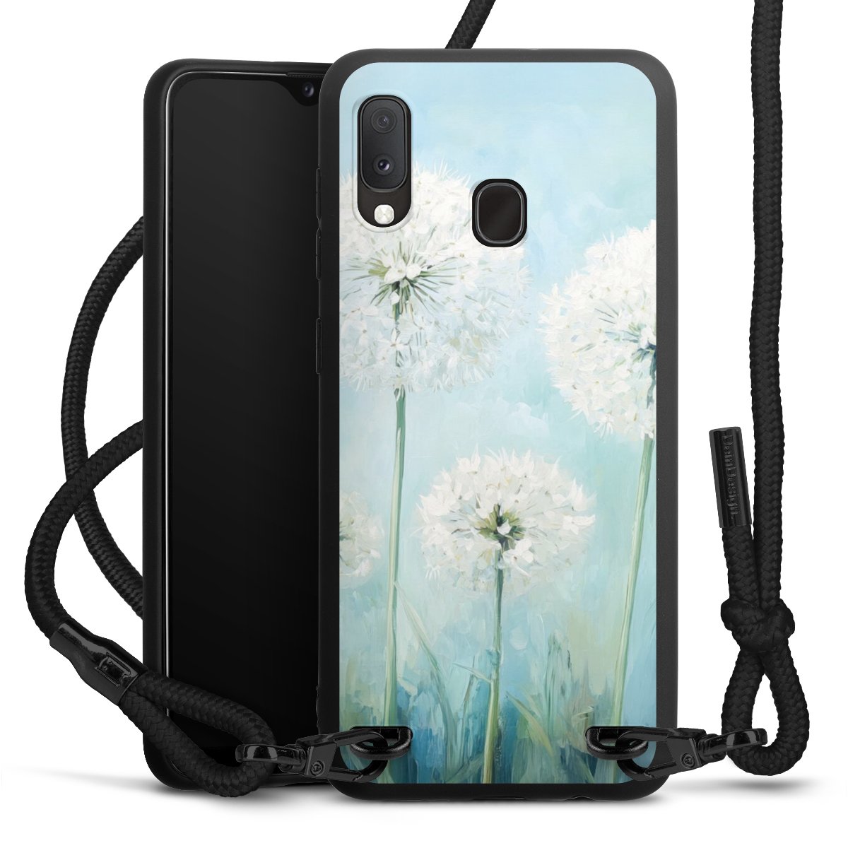 The matt black silicone case is made of flexible TPU (thermoplastic polyurethane) and offers robust protection. The durable, unbreakable material makes the cover flexible and dimensionally stable at the same time. The matte surface makes your design stand out more and is less susceptible to fingerprints and dirt. The stylish trend accessory fits comfortably in the hand and is perfectly complemented by the fabric (polyester) mobile phone strap. The braided fabric strap is approx. 1.70 metres long with a diameter of approx. 0.5 cm. Due to the special knotting technique, the length of the strap can be adjusted by simply pulling it, so that you can adapt it individually to your wishes. The practical case to wear around your neck is available with the fabric strap in black. As a little icing on the cake, we have provided the strap with a chic metal fastener in matt black. The strap is securely fastened to the case with loops made of high-quality genuine leather and press studs. The ends of the fabric strap are covered with metallic end caps and thus protected from fraying.