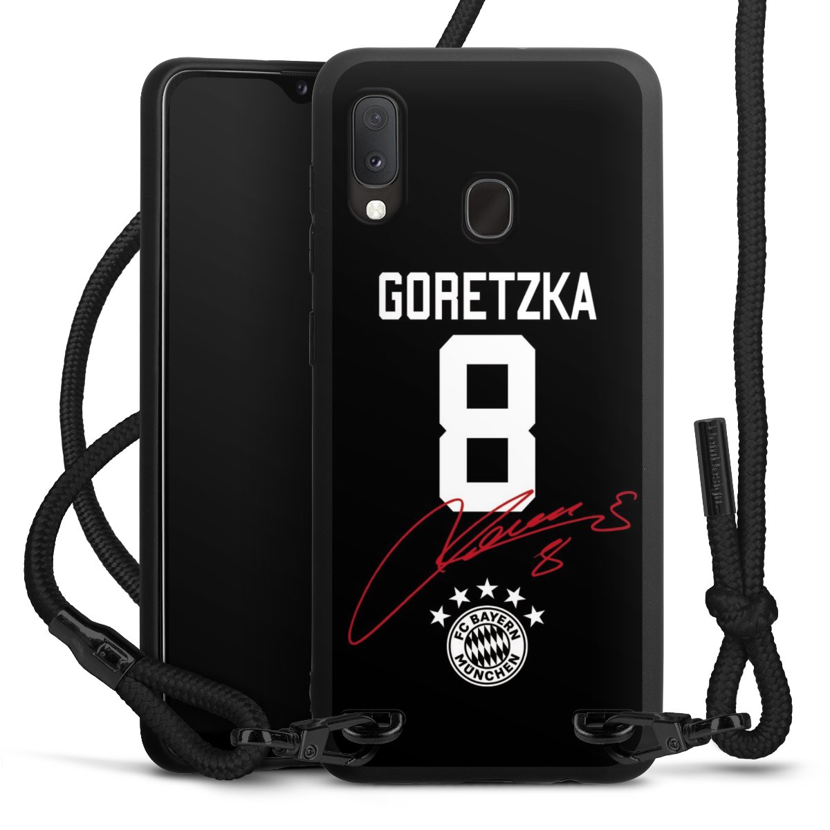 The matt black silicone case is made of flexible TPU (thermoplastic polyurethane) and offers robust protection. The durable, unbreakable material makes the cover flexible and dimensionally stable at the same time. The matte surface makes your design stand out more and is less susceptible to fingerprints and dirt. The stylish trend accessory fits comfortably in the hand and is perfectly complemented by the fabric (polyester) mobile phone strap. The braided fabric strap is approx. 1.70 metres long with a diameter of approx. 0.5 cm. Due to the special knotting technique, the length of the strap can be adjusted by simply pulling it, so that you can adapt it individually to your wishes. The practical case to wear around your neck is available with the fabric strap in black. As a little icing on the cake, we have provided the strap with a chic metal fastener in matt black. The strap is securely fastened to the case with loops made of high-quality genuine leather and press studs. The ends of the fabric strap are covered with metallic end caps and thus protected from fraying.