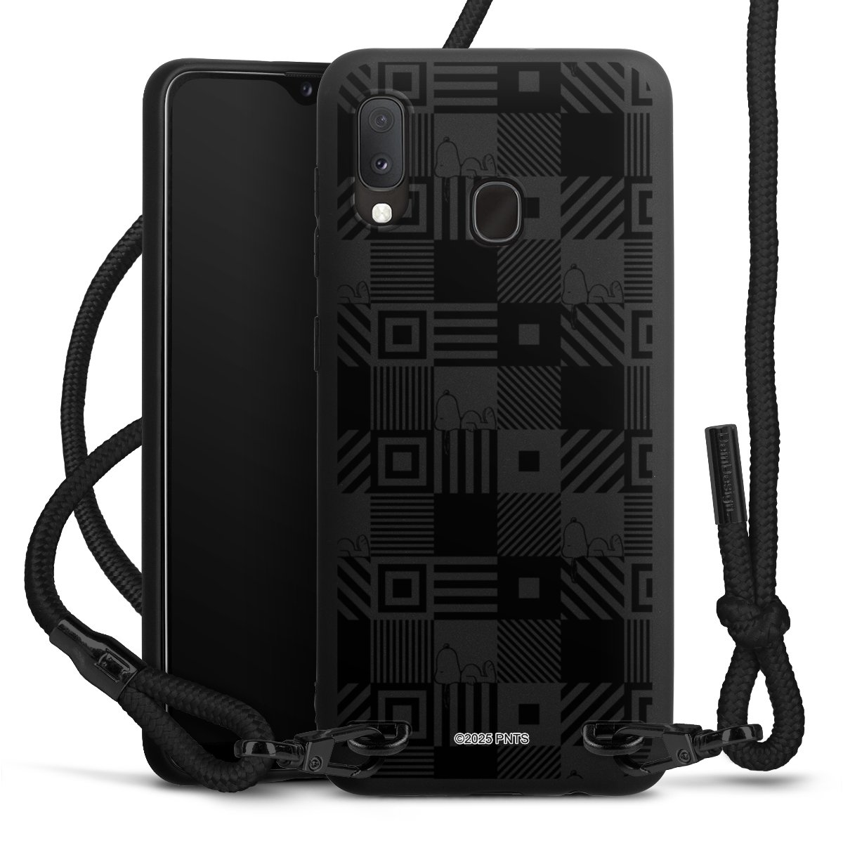 The matt black silicone case is made of flexible TPU (thermoplastic polyurethane) and offers robust protection. The durable, unbreakable material makes the cover flexible and dimensionally stable at the same time. The matte surface makes your design stand out more and is less susceptible to fingerprints and dirt. The stylish trend accessory fits comfortably in the hand and is perfectly complemented by the fabric (polyester) mobile phone strap. The braided fabric strap is approx. 1.70 metres long with a diameter of approx. 0.5 cm. Due to the special knotting technique, the length of the strap can be adjusted by simply pulling it, so that you can adapt it individually to your wishes. The practical case to wear around your neck is available with the fabric strap in black. As a little icing on the cake, we have provided the strap with a chic metal fastener in matt black. The strap is securely fastened to the case with loops made of high-quality genuine leather and press studs. The ends of the fabric strap are covered with metallic end caps and thus protected from fraying.