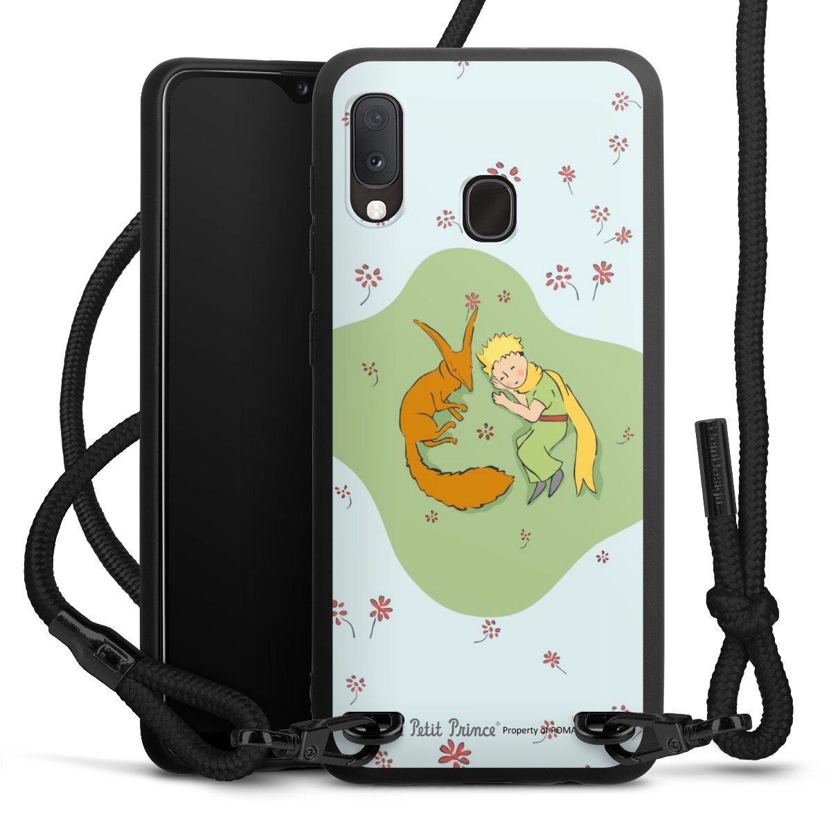 The matt black silicone case is made of flexible TPU (thermoplastic polyurethane) and offers robust protection. The durable, unbreakable material makes the cover flexible and dimensionally stable at the same time. The matte surface makes your design stand out more and is less susceptible to fingerprints and dirt. The stylish trend accessory fits comfortably in the hand and is perfectly complemented by the fabric (polyester) mobile phone strap. The braided fabric strap is approx. 1.70 metres long with a diameter of approx. 0.5 cm. Due to the special knotting technique, the length of the strap can be adjusted by simply pulling it, so that you can adapt it individually to your wishes. The practical case to wear around your neck is available with the fabric strap in black. As a little icing on the cake, we have provided the strap with a chic metal fastener in matt black. The strap is securely fastened to the case with loops made of high-quality genuine leather and press studs. The ends of the fabric strap are covered with metallic end caps and thus protected from fraying.