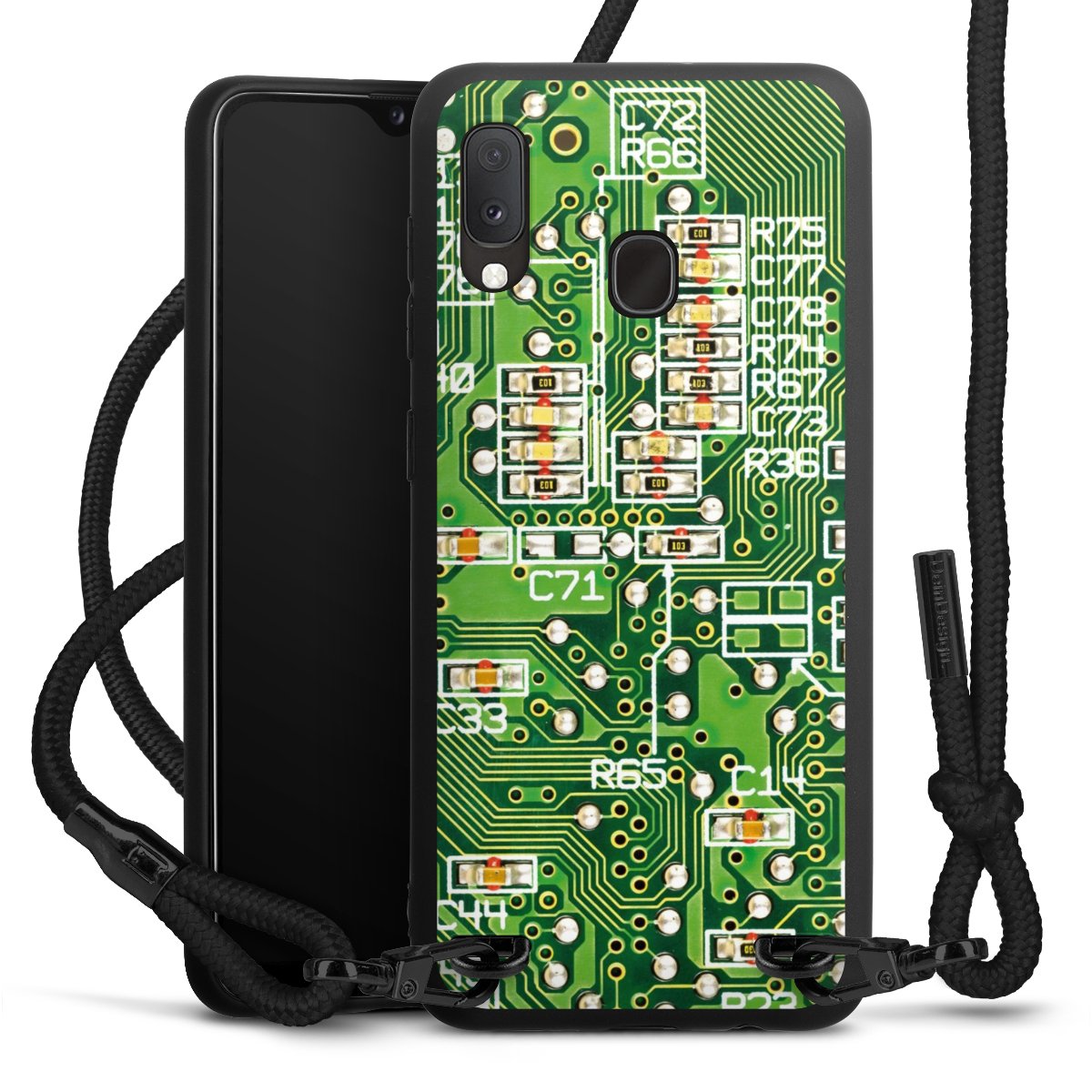 We use the solid direct print process for this phone case, which is why the print area only covers the back and the edge remains unprinted. The case to wear around your neck can be ordered unprinted, fully printed, or partially printed. For your design, either choose one of our exclusive shop motifs or get creative and create your own design, for example with photos and overlays. Design your own personal trend accessory and make an individual statement on the streets!