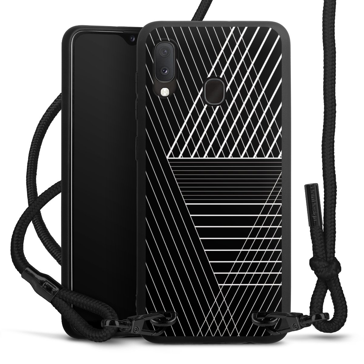 The matt black silicone case is made of flexible TPU (thermoplastic polyurethane) and offers robust protection. The durable, unbreakable material makes the cover flexible and dimensionally stable at the same time. The matte surface makes your design stand out more and is less susceptible to fingerprints and dirt. The stylish trend accessory fits comfortably in the hand and is perfectly complemented by the fabric (polyester) mobile phone strap. The braided fabric strap is approx. 1.70 metres long with a diameter of approx. 0.5 cm. Due to the special knotting technique, the length of the strap can be adjusted by simply pulling it, so that you can adapt it individually to your wishes. The practical case to wear around your neck is available with the fabric strap in black. As a little icing on the cake, we have provided the strap with a chic metal fastener in matt black. The strap is securely fastened to the case with loops made of high-quality genuine leather and press studs. The ends of the fabric strap are covered with metallic end caps and thus protected from fraying.