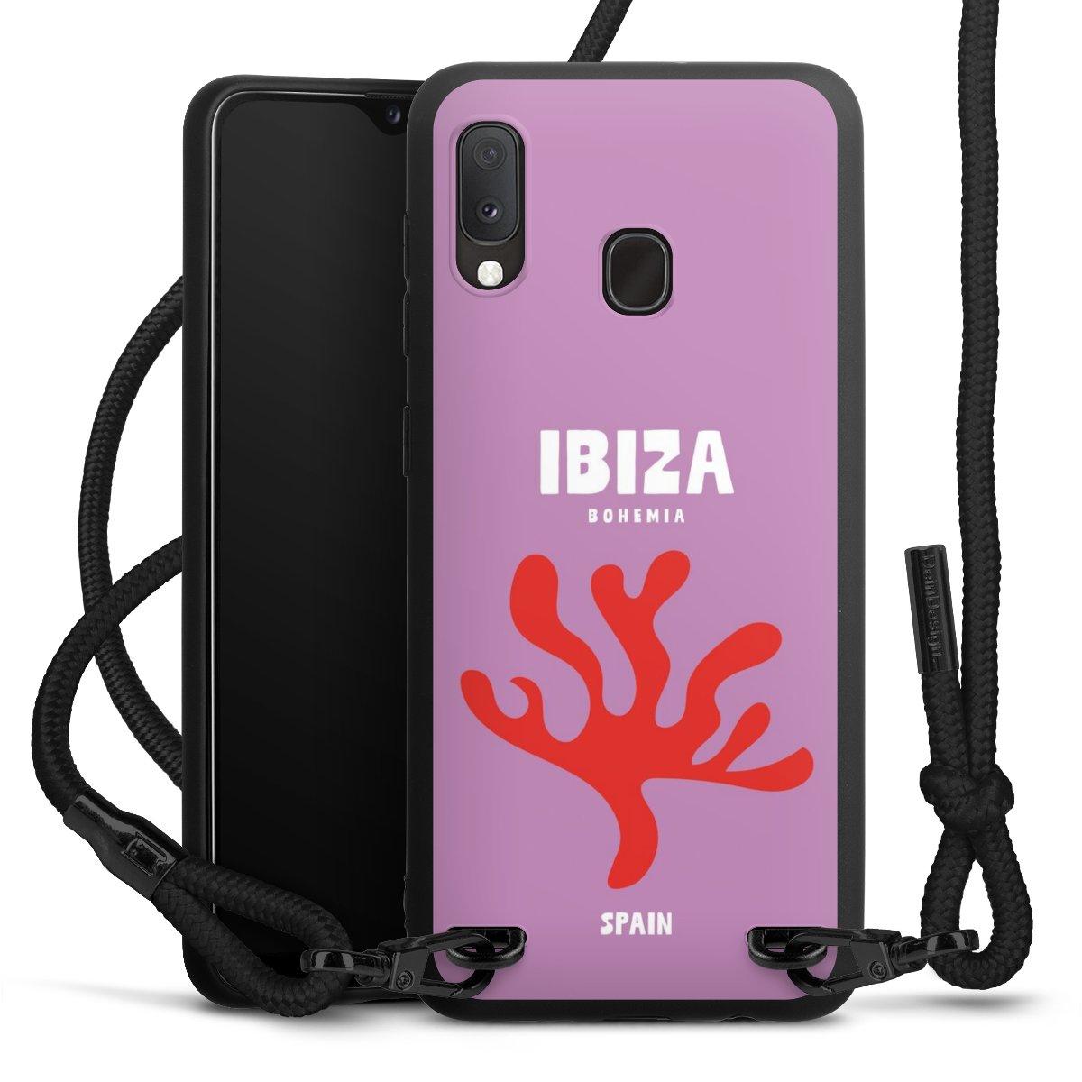 We use the solid direct print process for this phone case, which is why the print area only covers the back and the edge remains unprinted. The case to wear around your neck can be ordered unprinted, fully printed, or partially printed. For your design, either choose one of our exclusive shop motifs or get creative and create your own design, for example with photos and overlays. Design your own personal trend accessory and make an individual statement on the streets!