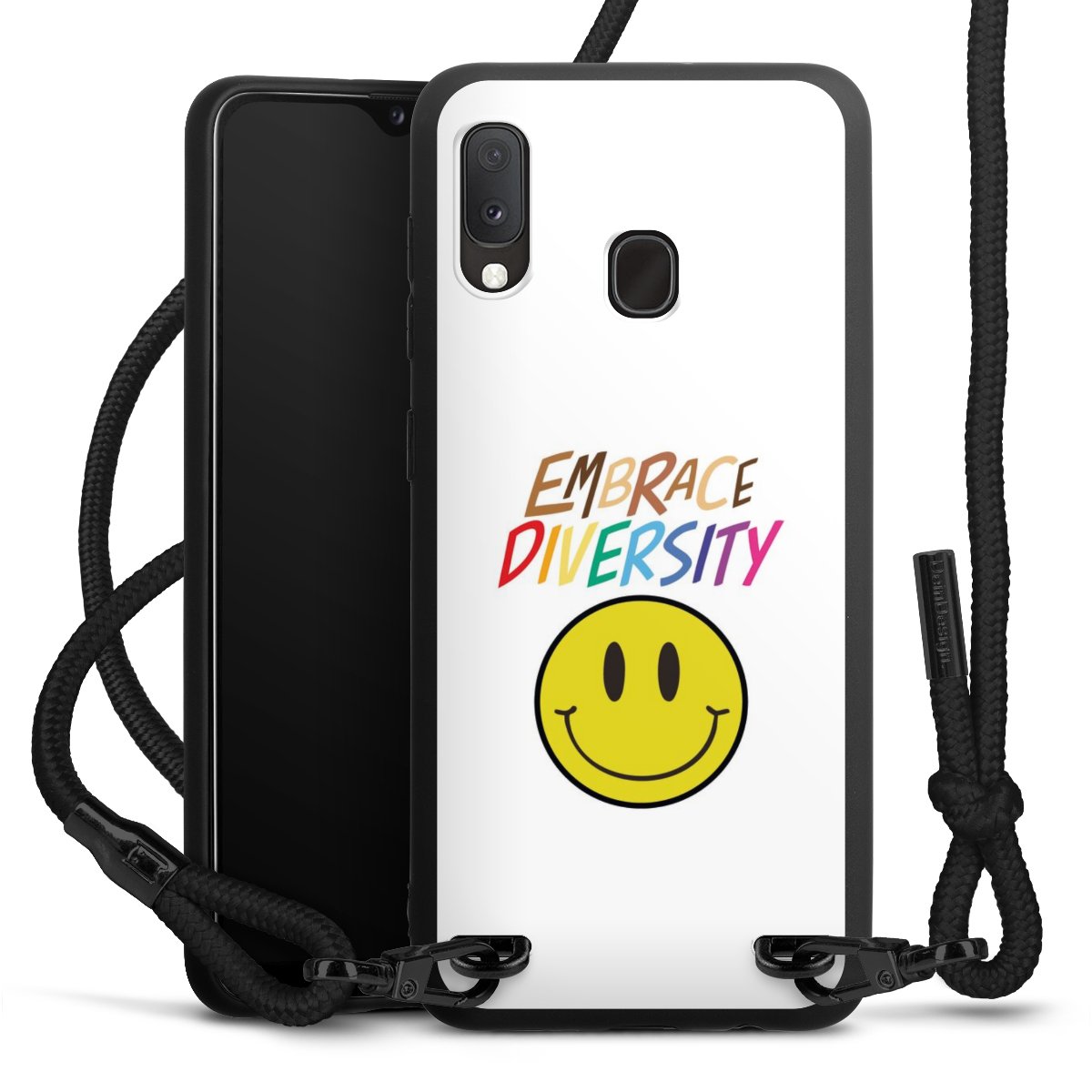 We use the solid direct print process for this phone case, which is why the print area only covers the back and the edge remains unprinted. The case to wear around your neck can be ordered unprinted, fully printed, or partially printed. For your design, either choose one of our exclusive shop motifs or get creative and create your own design, for example with photos and overlays. Design your own personal trend accessory and make an individual statement on the streets!