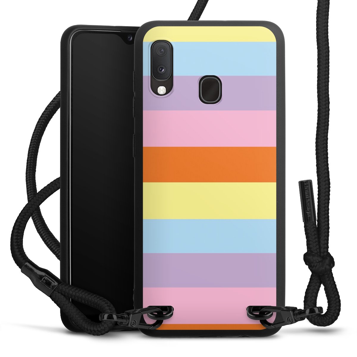 We use the solid direct print process for this phone case, which is why the print area only covers the back and the edge remains unprinted. The case to wear around your neck can be ordered unprinted, fully printed, or partially printed. For your design, either choose one of our exclusive shop motifs or get creative and create your own design, for example with photos and overlays. Design your own personal trend accessory and make an individual statement on the streets!