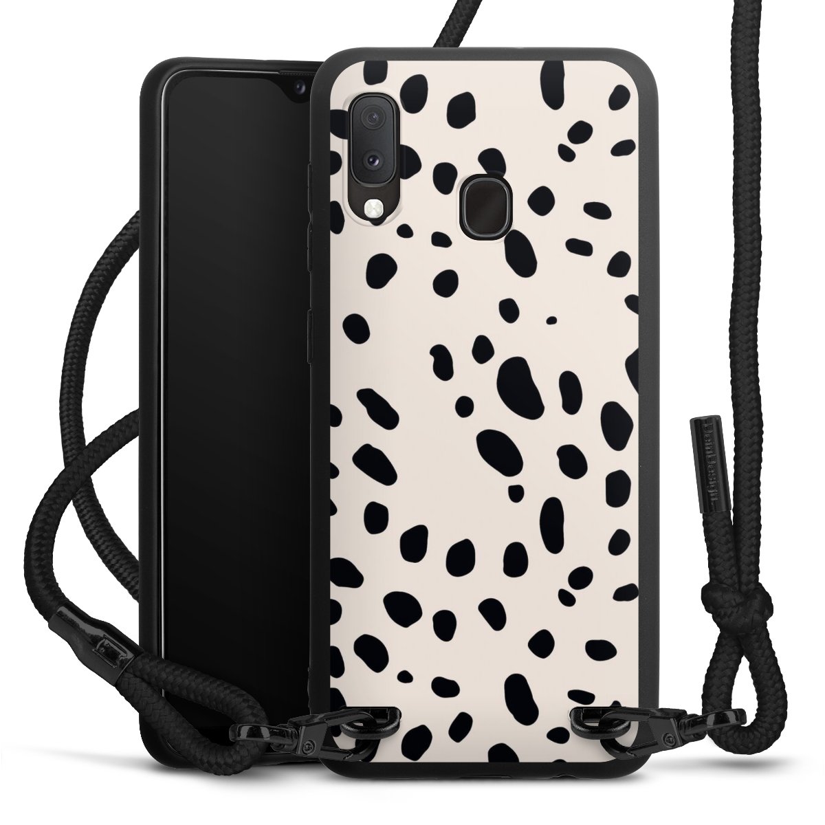 The matt black silicone case is made of flexible TPU (thermoplastic polyurethane) and offers robust protection. The durable, unbreakable material makes the cover flexible and dimensionally stable at the same time. The matte surface makes your design stand out more and is less susceptible to fingerprints and dirt. The stylish trend accessory fits comfortably in the hand and is perfectly complemented by the fabric (polyester) mobile phone strap. The braided fabric strap is approx. 1.70 metres long with a diameter of approx. 0.5 cm. Due to the special knotting technique, the length of the strap can be adjusted by simply pulling it, so that you can adapt it individually to your wishes. The practical case to wear around your neck is available with the fabric strap in black. As a little icing on the cake, we have provided the strap with a chic metal fastener in matt black. The strap is securely fastened to the case with loops made of high-quality genuine leather and press studs. The ends of the fabric strap are covered with metallic end caps and thus protected from fraying.