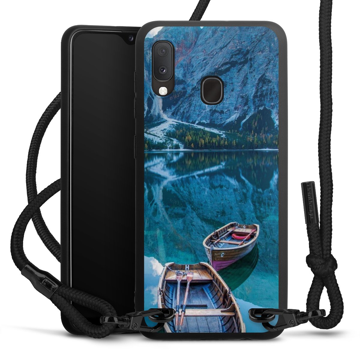 We use the solid direct print process for this phone case, which is why the print area only covers the back and the edge remains unprinted. The case to wear around your neck can be ordered unprinted, fully printed, or partially printed. For your design, either choose one of our exclusive shop motifs or get creative and create your own design, for example with photos and overlays. Design your own personal trend accessory and make an individual statement on the streets!