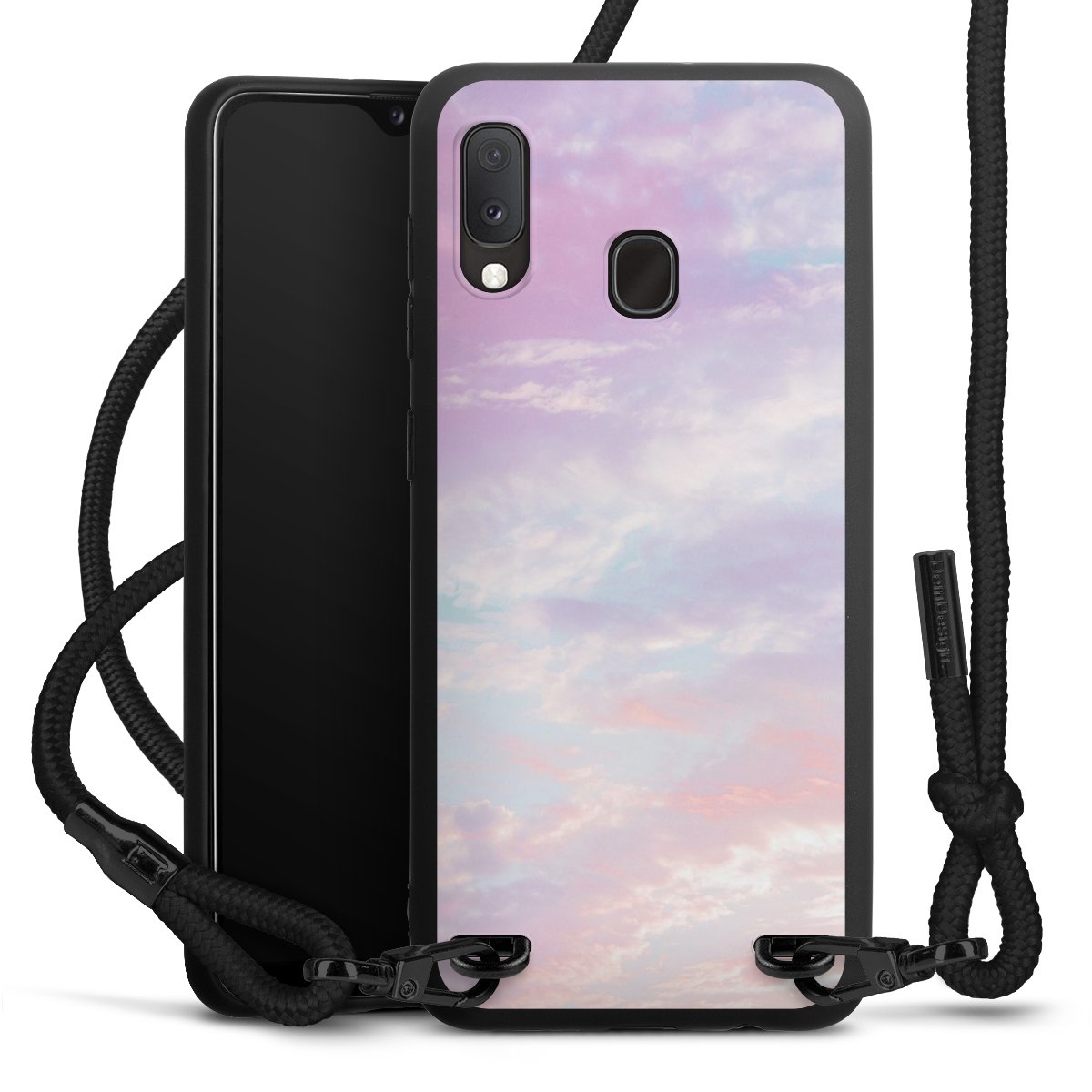 We use the solid direct print process for this phone case, which is why the print area only covers the back and the edge remains unprinted. The case to wear around your neck can be ordered unprinted, fully printed, or partially printed. For your design, either choose one of our exclusive shop motifs or get creative and create your own design, for example with photos and overlays. Design your own personal trend accessory and make an individual statement on the streets!