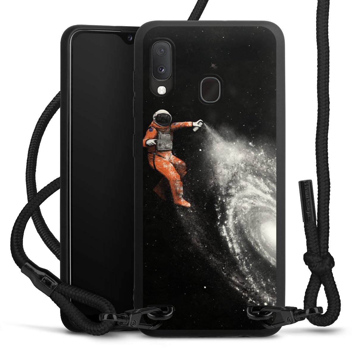 We use the solid direct print process for this phone case, which is why the print area only covers the back and the edge remains unprinted. The case to wear around your neck can be ordered unprinted, fully printed, or partially printed. For your design, either choose one of our exclusive shop motifs or get creative and create your own design, for example with photos and overlays. Design your own personal trend accessory and make an individual statement on the streets!