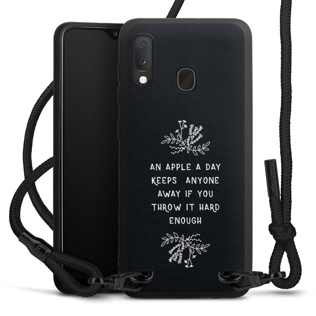 The matt black silicone case is made of flexible TPU (thermoplastic polyurethane) and offers robust protection. The durable, unbreakable material makes the cover flexible and dimensionally stable at the same time. The matte surface makes your design stand out more and is less susceptible to fingerprints and dirt. The stylish trend accessory fits comfortably in the hand and is perfectly complemented by the fabric (polyester) mobile phone strap. The braided fabric strap is approx. 1.70 metres long with a diameter of approx. 0.5 cm. Due to the special knotting technique, the length of the strap can be adjusted by simply pulling it, so that you can adapt it individually to your wishes. The practical case to wear around your neck is available with the fabric strap in black. As a little icing on the cake, we have provided the strap with a chic metal fastener in matt black. The strap is securely fastened to the case with loops made of high-quality genuine leather and press studs. The ends of the fabric strap are covered with metallic end caps and thus protected from fraying.