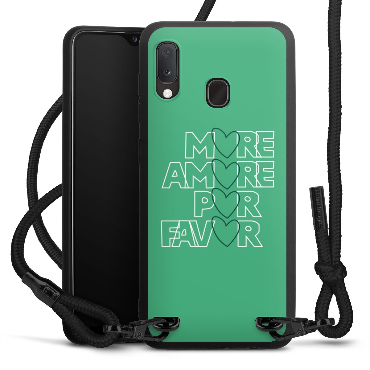We use the solid direct print process for this phone case, which is why the print area only covers the back and the edge remains unprinted. The case to wear around your neck can be ordered unprinted, fully printed, or partially printed. For your design, either choose one of our exclusive shop motifs or get creative and create your own design, for example with photos and overlays. Design your own personal trend accessory and make an individual statement on the streets!