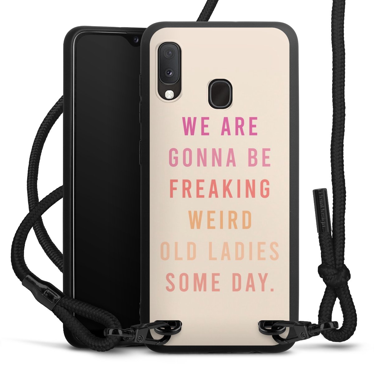 We use the solid direct print process for this phone case, which is why the print area only covers the back and the edge remains unprinted. The case to wear around your neck can be ordered unprinted, fully printed, or partially printed. For your design, either choose one of our exclusive shop motifs or get creative and create your own design, for example with photos and overlays. Design your own personal trend accessory and make an individual statement on the streets!