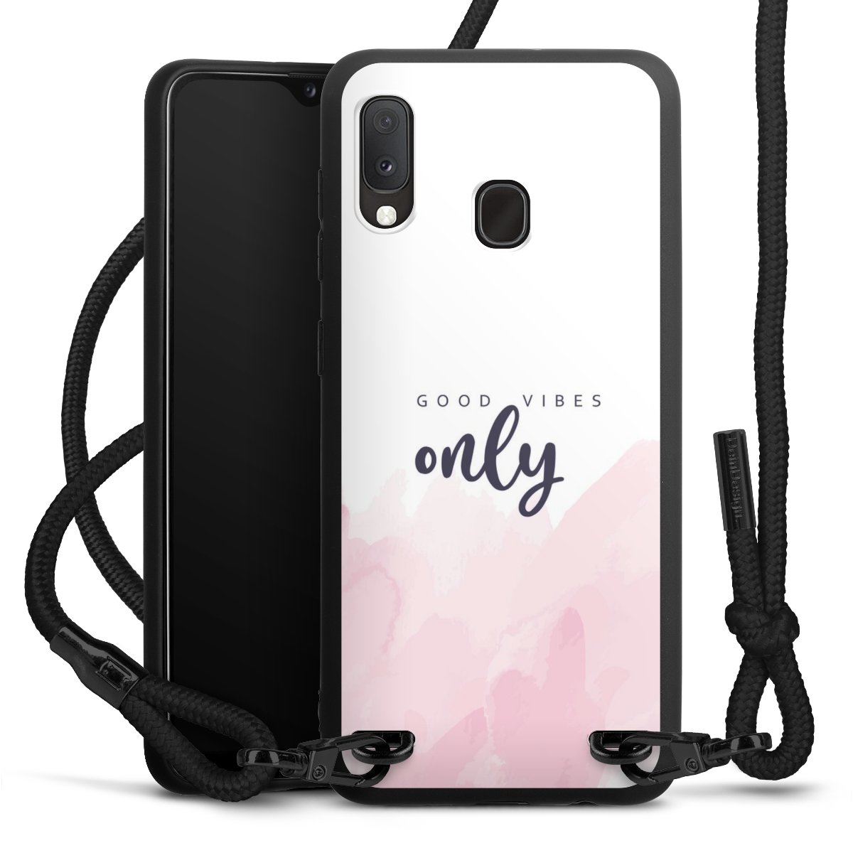 We use the solid direct print process for this phone case, which is why the print area only covers the back and the edge remains unprinted. The case to wear around your neck can be ordered unprinted, fully printed, or partially printed. For your design, either choose one of our exclusive shop motifs or get creative and create your own design, for example with photos and overlays. Design your own personal trend accessory and make an individual statement on the streets!